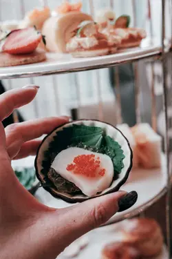週日嘅下午約咗朋友,最鍾意就係搵個地方大家坐低傾計,今次就同朋友去到位於將軍澳酒店入面嘅星幕,最近有一個和風白朱古力蜜語下午茶系列,賣相吸引。餐廳本身位於酒店47樓,擁有開揚嘅景觀,遠眺仲可以見到海景,真係好chill!明太子玉子蛋三文治三文魚子忌廉芝士撻酥炸廣島蠔及黑魚子配日式蛋黃醬日式磯煮鮑魚配松葉蟹膏醬北海道刺身帶子配青森蘋果蜜糖啫喱下午茶有分鹹點同埋甜點,鹹點就有以上五款,令人印象深刻嘅有酥炸廣島蠔及黑魚子配日式蛋黃醬,炸得香口酥脆,值得一試。另外北海道刺身帶子配青森蘋果蜜糖啫喱好特別,蘋果蜜糖啫喱加上新鮮嘅刺身帶子,係一個有趣又清爽嘅配搭~柚子鬆餅配蜜糖柚子及濃縮奶油日本蜜柑白朱古力蛋卷青森蘋果批北海道白朱古力芝士蛋糕迷你日式鬆餅配白朱古力忌廉日本哈密瓜白朱古力千層酥甜點就有另外六款,整體造型都幾吸引,而味道都唔錯,比如日本蜜柑白朱古力蛋捲以及哈密瓜白朱古力千層酥加入水果,口感相對清新一些。柚子鬆餅配蜜糖柚子及濃縮奶油又係另一個令人眼目一新嘅甜點,清新嘅蜜糖柚子醬加上杰身嘅濃縮奶油,奶味重之餘亦不失甜蜜。另外一啲用上白朱古力主題嘅甜品香濃美味,正好藉着afternoon tea 既時間慢慢品嚐~LattePeach & Passion Fruit Tea…查看更多