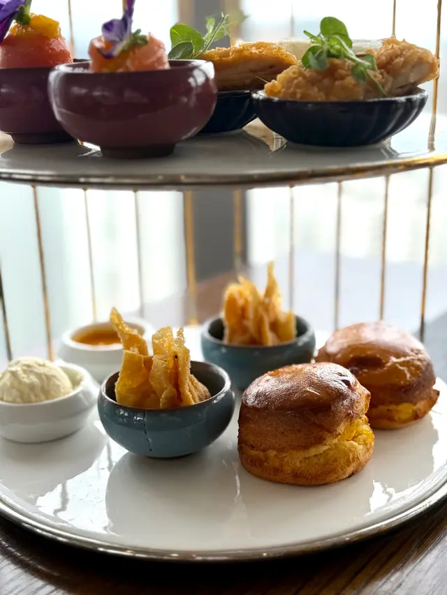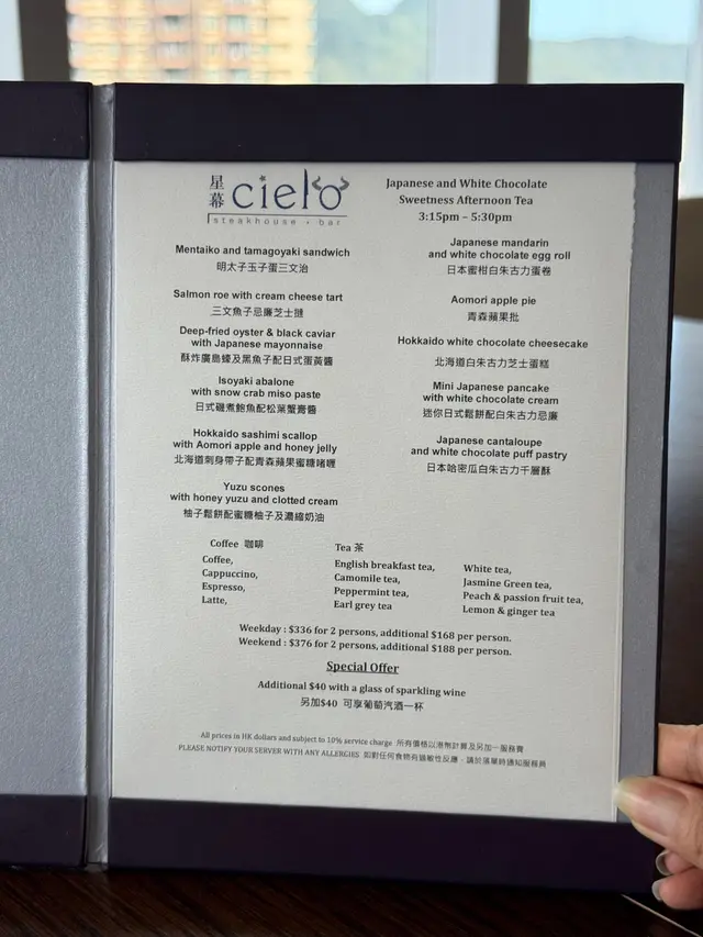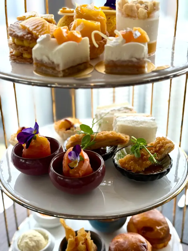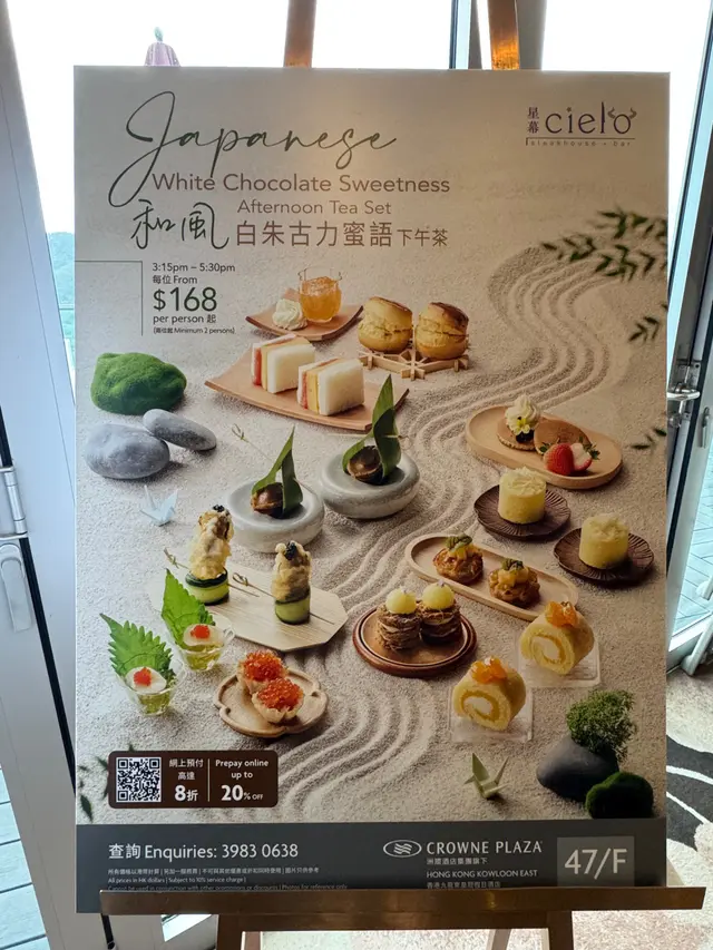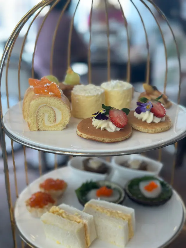 週日嘅下午約咗朋友,最鍾意就係搵個地方大家坐低傾計,今次就同朋友去到位於將軍澳酒店入面嘅星幕,最近有一個和風白朱古力蜜語下午茶系列,賣相吸引。餐廳本身位於酒店47樓,擁有開揚嘅景觀,遠眺仲可以見到海景,真係好chill!明太子玉子蛋三文治三文魚子忌廉芝士撻酥炸廣島蠔及黑魚子配日式蛋黃醬日式磯煮鮑魚配松葉蟹膏醬北海道刺身帶子配青森蘋果蜜糖啫喱下午茶有分鹹點同埋甜點,鹹點就有以上五款,令人印象深刻嘅有酥炸廣島蠔及黑魚子配日式蛋黃醬,炸得香口酥脆,值得一試。另外北海道刺身帶子配青森蘋果蜜糖啫喱好特別,蘋果蜜糖啫喱加上新鮮嘅刺身帶子,係一個有趣又清爽嘅配搭~柚子鬆餅配蜜糖柚子及濃縮奶油日本蜜柑白朱古力蛋卷青森蘋果批北海道白朱古力芝士蛋糕迷你日式鬆餅配白朱古力忌廉日本哈密瓜白朱古力千層酥甜點就有另外六款,整體造型都幾吸引,而味道都唔錯,比如日本蜜柑白朱古力蛋捲以及哈密瓜白朱古力千層酥加入水果,口感相對清新一些。柚子鬆餅配蜜糖柚子及濃縮奶油又係另一個令人眼目一新嘅甜點,清新嘅蜜糖柚子醬加上杰身嘅濃縮奶油,奶味重之餘亦不失甜蜜。另外一啲用上白朱古力主題嘅甜品香濃美味,正好藉着afternoon tea 既時間慢慢品嚐~LattePeach & Passion Fruit Tea…查看更多