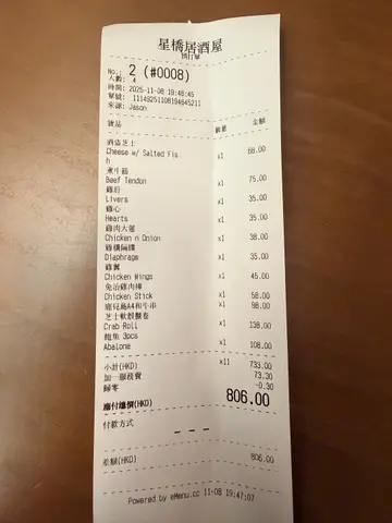 放工relax下 去下居酒屋 輕食一下 同朋友傾下計 都幾舒服 入夜後嘅嘉咸街 少咗份熱鬧 多咗份寧靜 入到店內 微黃燈光 氣氛令人放鬆 最令人印象深刻係牆上嘅巨型壁畫 畫風可愛 用色簡單 唔會造成壓迫感 🧡哈佬喂限定荔枝梳打cocktail 造型鬼怪 但不失可愛 配合萬聖節主題 先飲一啖 雞尾酒味會較濃烈 然後面層棉花糖溶掉就會增加甜度 攪拌後仲有梳打嘅刺激感 混雜荔枝果味 幾重味道口感 刺激味蕾 清爽獨特 有驚喜 💛日本河豚乾 暖暖哋 燒過嘅河豚乾有嚼勁 彈牙感 味道經過味醂醃製和烘乾 有淡淡油脂清香 惹味可口 💛煮牛筋 口感腍滑 又不失口感 而且非常入味 又唔會過於油膩 💛刺身 赤貝 鮮甜爽脆 搭配醬油&芥末 鮮味更突出 💛免治雞肉棒 汁燒 搭配生蛋黃 口感滑順與蛋香融合 攪碎雞肉加入雞軟骨 多重口感層次🍢串燒 💙虎蝦經過燒烤有焦香味 肉質結實Q彈 仲有陣陣鮮甜蝦味 💙雞軟骨 雞肉部份口感嫩滑 軟骨位置爽口清脆 💙雞橫隔膜 軟嫩&爽脆之間 咬落去有油脂溢出 口腔非常滿足 💙九條蔥豚肉卷 豬肉片薄嫩多汁 九條蔥口感爽脆 兩者融合 味道濃郁 口感豐富而唔覺得漏 💙牛肋肉 肥瘦相間 經燒烤後 軟嫩中帶有嚼勁 唔會過於乾柴 💙三文魚腩 油脂豐富 甘香魚油會充滿口腔 鮮味濃郁 💙翠肉瓜 面層有牛油香氣 食落juicy又香口 …查看更多
