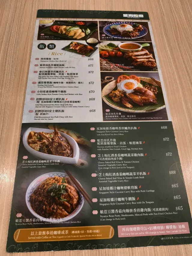 曾經聽朋友講過呢間啲叻沙好出名,咁啱呢晚行開就黎試試。餐廳感覺舒服地方寬敞坐得好舒適。雖然呢日天氣突然好惡劣,因為食得好開心,所以完全冇影響心情。呢間餐廳嘅嘢食真係好好食👍🏻性價比好高。滿堂椰槳飯豬頸肉大口感、豬扒香口、花生香脆、魚仔惹味、腩肉入味所有調味都剛剛好,配合埋煎蛋,非常豐富澎湃,飽肚之選招牌8安士厚切豬扒飯豬扒非常厚實香脆,配埋蔬菜、特色醬汁真係一口氣清碟,美中不足係豬扒燶咗少少,有少許硬感覺。檸檬草雞肉叻沙+摻摻呢個真係大贊👍🏻湯底有點酸加椰香味道非常特別,配料魚蛋豆腐卜,非常入味,面層係粗麵、底層係類似粉絲嘅米粉,有芽菜。所有嘢配合得非常完美。呢間餐廳我絕對會再次食