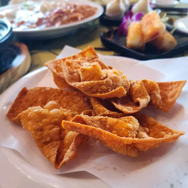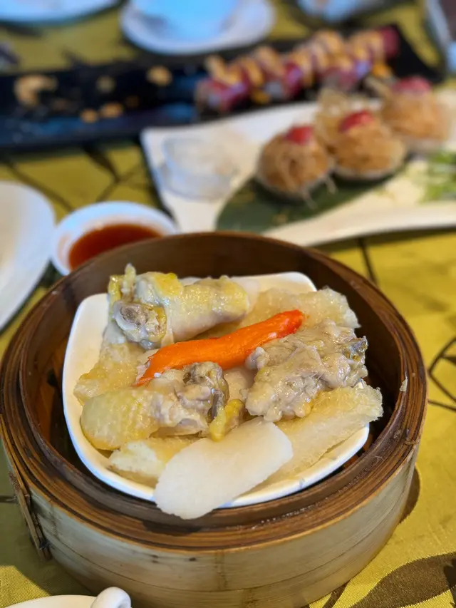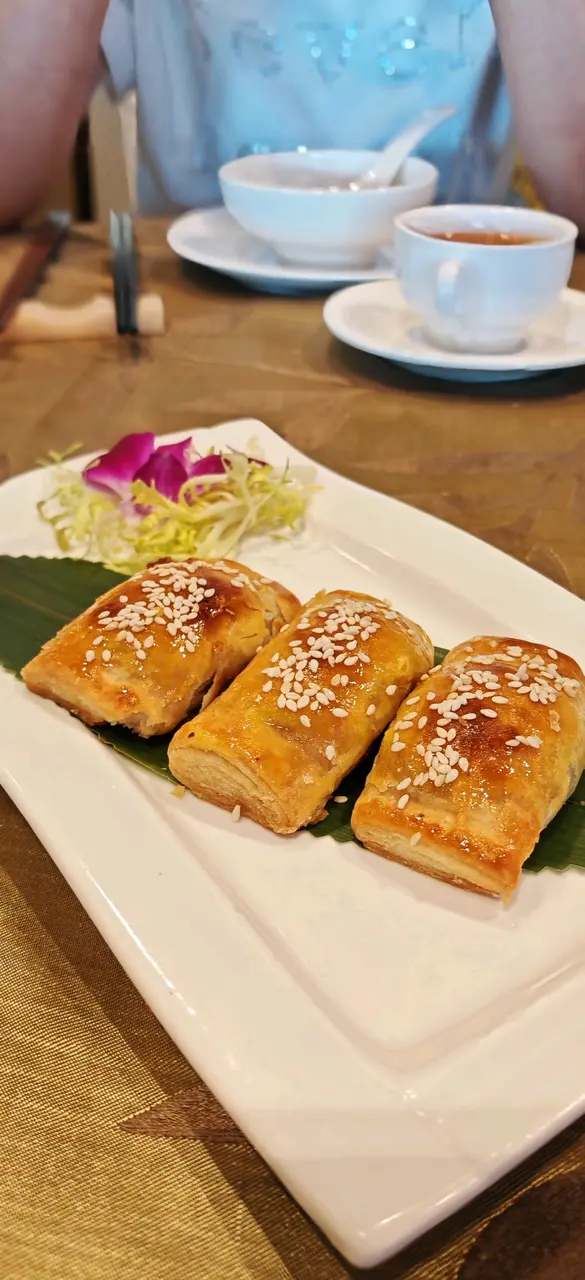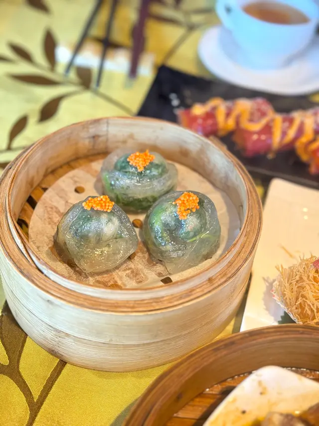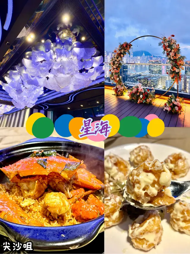 一步餐廳巳經被出面個勁大露台吸引,坐在即同朋友出去打咭,企係露台望向兩邊维港景色其係寫意,服務員仲話呢到晚上有煙花餐仲可以睇到煙花架🥰🥰我們兩個最愛香口嘢所以點咗好多香口嘢食😁😁😋😋錦鹵雲吞薄如蟬翼的雲吞皮伴隨住蕃茄海鮮醬汁裏面有好新鮮嘅魷魚、帶子同埋蝦,好抵食喎68蚊咋😁到脆卜卜酸酸甜甜好惹味👍 脆皮吉列沙律海皇卷😍 炸到金黃色咬落去好多沙律醬同埋好大條蟹柳喺裏面仲有蝦 ,直係絕配呀 😁食到停唔到口😅雪山黑毛豬叉燒餐包,輕觸即化的酥皮如新雪坍塌,露出蜜糖色的黑豚肉,肉汁滲進麵包的滋滋聲好有驚喜😍金鉤啤梨鹹水角壓軸登場時,移傳統的鹹水角被捏成西洋梨造型,炸得通透的脆皮下,咬破的瞬間,滾燙的香菇肉末在口腔回味💯太極鴛鴦飯,廚師用白汁鮮蝦與茄汁肉絲勾勒出太極圖,兩種醬汁層次分明, 個飯底就梗係炒飯底啦😋茄汁好鮮味好好味白汁個蝦勁大隻,兩個味都好好味,呢個一定係推介好耐冇食仲要係好大碟👍👍又點少得甜品韓風柚子蜜餞脆麻花在,糖絲拉成的銀河系裡,蘸著柚子蜜的酸甜味好清新一d都唔油膩👍👍星。海薈尖沙咀彌敦道100號,The ONE 18樓…查看更多
