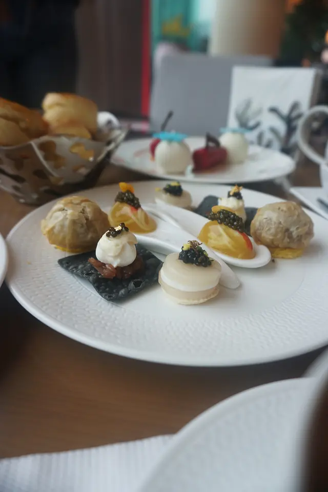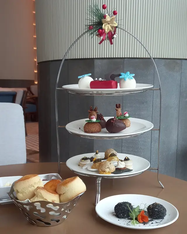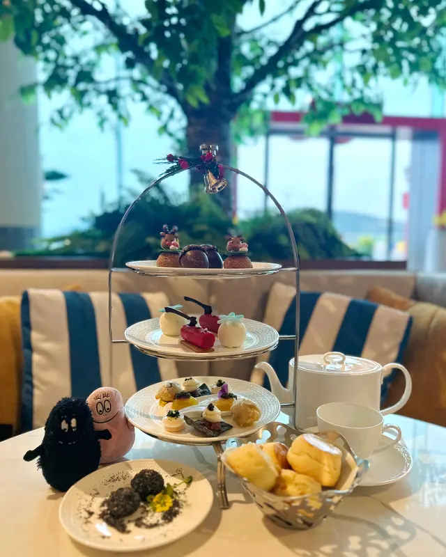 我上星期六約了好友去擦大餐!由下午吃到夜晚盡興到不得之了怪開心。這天跟好友們走到香港富麗敦海洋公園酒店!皆因於十一月酒店推出了日本秋祭慶典,酒店大堂的星耀廳與星耀廊Lighthouse Lounge也響應主題推出特色下午茶及自助餐,山長水遠去到我們決定下午茶兼自助餐同日進行。這日天色雖然有點灰濛但也敵不過餐廳無敵落地大玻璃,陽光滲進來那份溫暖感覺真的非常舒適。我們點的下午茶經已準備就緒!Bartender正為我們調配特飲完成後便可以味遊日本了。來到富麗敦有富富陪我們一起嘆下茶好榮幸啊!下午茶的賣相精緻而且充滿濃濃的日式秋意,優雅之餘拍照出來的效果也非常美麗。Tea Set可自選咖啡或JING精選茗茶!也可選擇這如富士山般的特飲雲抹椰霧!椰子水的清甜配搭抹茶口感細滑味道甘甜好喝喔。另外還有兩款本月的特飲可加錢品嚐!我這杯特調雞尾酒加$58,酒香輕怡味道好清新配搭香脆辣紫菜增加刺激感很有趣配搭。無酒精特飲有這杯抹茶紅豆加$38!濃郁甘香的抹茶配搭香甜紅豆好滿足的味道。下午茶點方面我們由沖繩遊走至福岡再落腳京都!為味蕾來一場和式的美味洗禮。龍蝦玉子燒!香甜的玉子燒上鋪滿了明太子蛋黃醬,面層綴以魚子醬徒添不少貴氣,非常豐滿的味道吃得我滿心歡喜。柚子啫喱紫蘇蟹肉脆撻!清脆的撻底內填滿了阿拉斯加蟹肉,面層在再鋪上一層通透的柚子啫喱,一口吃下去非常清新柚子香氣背後帶著紫蘇芳香,配搭鮮甜的阿拉斯加蟹肉美味之處盡在不言中。沖繩紫薯蜂蜜牛油脆多士!非常鬆脆的牛油多士吃得我怦然心動,面頭那細滑的紫薯絕對能夠錦上添花,這件多士口感跟味道也令人食指大動。福岡士多啤梨櫻花蛋糕!爽滑的外層口感美妙,內裏是充滿草莓香氣的忌廉及杏仁蛋糕,加上櫻花慕絲帶出櫻花樹下的浪漫。京都焙茶白桃蛋糕!焙茶慕絲配白桃啫喱加上焙茶蛋糕,那濃郁甘醇的茶香會令味蕾雀躍萬分,是一件非常美味又可愛的甜點。和風味遊下午茶收費為$238/位,由即日起至11月30日每日下午3時至5時30分供應,另外於Lighthouse Lounge星耀廊消費滿$600或以上,就可獲贈爐炭燒$100優惠券一張。…查看更多