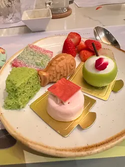 終於嚟咗試富麗敦海洋公園酒店嘅自助餐,落地大玻璃窗,望住出邊日落用餐,座位尚算闊落都坐得幾舒服,食物種類有好多唔同國家嘅菜式,中式、日式、西式、印度、星馬第一輪一定係食凍海鮮,長腳蟹蟹腳肉質,屋企人更加鍾意食蟹鉗啖啖肉,龍蝦肉質紮實一樣好鮮甜刺身方面,三文魚同甜蝦都比較新鮮,屋企人試咗另外幾款話不過不失第一次食鹿肉有驚喜,味道同牛幾相似,但肉質比較嫩,試左印度咖喱羊肉配薄餅幾好味燉湯極力推介必飲,今次係茶樹菇燉瘦肉,好清甜嘅湯,我飲咗三碗湯粉麵點咗泰式牛肉濃湯底,湯底比想像中清,墨魚丸好味可以一試甜品幾精緻,芒果椰子蛋糕整成迷你椰青咁好得意,鯛魚口感軟紮實有蛋味,斑蘭蛋糕鬆軟好香斑斕味,椰汁糕煙靭好味仲有朱古力噴泉,小朋友都玩得開心仲有好多水果選擇,西瓜同哈密瓜好甜又多汁飲品方面就有橙汁、蘋果汁、凍檸茶、咖啡任飲,仲有一款好特別叫做排毒美顏水,見有好多水果蔬菜喺入邊浸住餐廳內有安排一隻好大隻既熊貓mascot同大家影相,外面有條走廊,食得太飽可以出去睇下海景散下步,仲有一堆發光兔仔可以影相打卡…查看更多