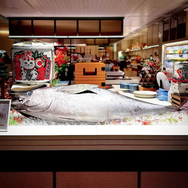 繼續分享富麗敦海洋公園酒店的日本秋祭慶典!這個自助餐隱藏大量我喜歡的日本美食元素,加上其他環球美食真的非常豐富。享用過下午茶後休息一會便走到隔鄰的Lighthouse Cafe星耀廳,品嚐3.5小時充滿日式風味的自助晚餐。品味秋日盛宴主題自助餐最矚目是週末特別限定的現場即剖吞拿魚!於6:45pm便會由師傅即席切割可持續發展的黃鰭吞拿魚。凍海鮮當中包括有龍蝦、雪場蟹腳、龍蝦鉗、麵包蟹、大蜆及海蝦選擇不少。前菜頭盤區有巴馬臣芝士、牛奶藍芝士及車打芝士。凍櫃內放滿了原個水果及生果拼盤。麵包區非常豐盛各式各樣麵包也有供應!當中包括有小法包、青橄欖麵包、法式牛油軟包、橄欖油麵包、薄脆餅乾及意大利麵包條。緊接著是沙律及凍肉專櫃!新鮮沙律菜有我最喜歡的羽衣甘藍超開心,凍肉則包括有蘑菇雞肉腸、沙樂美腸、西班牙辣肉腸及紅椒雜肉腸,旁邊還有大量的沙律配料及汁醬供應,喜歡如何配搭悉隨尊便。現成沙律區也非常豐富包括有意粉沙律、吞拿魚沙律、芫荽蜜糖伴鳳梨、煙燻鴨胸沙律、燒茄子伴芝麻醬及煙三文魚。刺身有馬刀貝、針魚、鯛魚、油甘魚及三文魚。日式美食有枝豆、日式冷麵、壽司、卷物,還有巨型魚生丼飯及各式漬物。熱辣辣的日式美食也有非常多的選擇!日式醬汁燒魚塊、蜜糖燒南瓜及甜番薯、照燒芝士豬肋骨、壽喜燒、鹽燒牛舌、烤魷魚、蔥燒雞串、烤番茄串、青椒、吉列豬扒、味噌燴牛尾及手工意粉。然後是食肉獸見到會心心眼的烤肉眼,配菜有烤紅菜頭及薯蓉。印度美食包括有印度檸檬飯、印度薄脆、印度烤餅、雞心豆咖喱、芝士咖喱及燒免治羊肉串卷。是日湯品包括有忌廉雜菌湯、肉骨茶及桂圓紅棗蓮子燉雞湯。燒味就有燒鴨、叉燒及油雞。粉麵專區有多款自選食材供選擇,可以配襯清湯或豬骨湯享用。接下來還有海南雞飯、清蒸海上鮮、蟹肉粉絲煲、椒鹽柚子肉排、油鹽水浸蜆、松露惹菌雞肉炆伊麵、草莓咕嚕雞球、蟹籽海鮮炒飯及桃膠浸娃娃菜。介紹完長長的鹹食自助餐線之後來到同樣激動的甜品區。首先有現場即製的鯛魚燒、鮮莓伴忌廉、南瓜撻、Cupcake及雜錦朱古力。斑蘭蛋糕、娘惹千層糕、和菓子、抹茶巴斯克蛋糕及6款口味雪糕。緊接著還有紅豆大福、蕨餅、馬德蓮蛋糕、花見糰子及日式芝士蛋糕。這個凍櫃內放了幾款精緻的甜點!當中包括有焙茶香桃慕絲、紐約芝士蛋糕、覆盆子朱古力蛋糕及士多啤梨櫻花慕絲。意式脆餅、麵包布甸、葡撻、新鮮曲奇、木糠布甸、朱古力噴泉及冬甩等,實在太多驚喜甜品真的要留肚好好品嚐,最後還有忘記影相的自助飲品區,有各式凍飲、茶及咖啡可以隨便享用。首先來品嚐豐富的冷盤前菜打開胃口!刺身帶閃令令的光澤是新鮮的提示!油甘魚鮮嫩迷人馬刀貝爽脆鮮味這兩款也非常推薦。凍海鮮中的龍蝦好多羔夠鮮爽,但我更愛甘香邪惡的麵包蟹蓋。此刻來到6:45pm即是代表吞拿魚要即場切割的時候!大家也準備就緒舉高相機和手機,期待師傅大顯身手為我們炮製這條黃鰭吞拿魚。師傅以純熟的手勢三爬兩撥將吞拿魚解體!切割出各部位供大家好好品嚐。新鮮即席切出來的吞拿魚口感非常軟嫩鮮甜!喜歡吃刺身的朋友必定會好開心。吃過凍美食之後來一碗桂圓紅棗蓮子燉雞湯就最適合不過!材料豐富味道香甜有位必定要喝番盅。這天是日式主題當然要先品嚐箇中滋味!壽喜燒的蔬菜香甜入味,串燒青椒夠清爽,日式醬汁燒魚塊就夠晒香甜入味,但我更加喜歡蜜糖燒南瓜那香甜美味。然後這碟包括了中菜及星馬菜的拼盤!燒味發揮正常,海南雞有齊三款醬汁夠正宗,但我最喜歡是他們的肉骨茶,這款是馬來西亞色風味充滿藥材的香甜味道,配搭油條一起享用超級和味。本來已經好滿足本想進軍甜品!但那肉骨茶實在太好味的關係終於要Encore,然後見到喱芝士又好吸引忍不住取來印度烤餅伴吃,另外那燒茄子伴芝麻醬也是我的Favorite呢。跟好友分享這杯雪糕及甜品有肥兩份擔當啦哈哈。甜品當中最特別肯定是即製的鯛魚燒其他也非常有水準!但我最最最推薦肯定是斑蘭蛋糕,口感超軟熟帶濃濃的斑蘭香氣,跟新加坡機場的出品沒多分別喔。品味秋日盛宴自助餐由即日起至11月30日供應,星期一至星期四成人$798/位、小童$408/位,星期五至星期日及公眾假期成人$888/位、小童$448/位,於星耀廳消費滿$600或以上可獲贈海洋公園海濱禮品廊$100優惠券一張。…查看更多