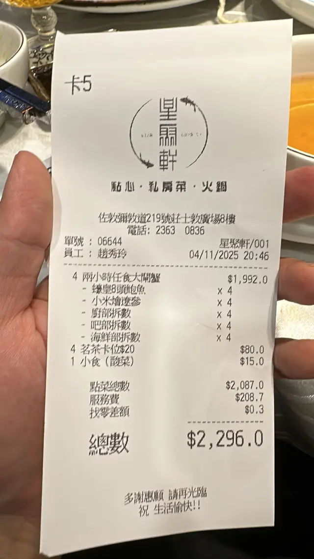 星聚軒 (佐敦) 網上訂座即賺Rice Dollars 網址: https://s.openrice.com/QrbS0Azo500 地址: 香港佐敦彌敦道219號莊士倫敦廣場8樓 電話: +852 23630836