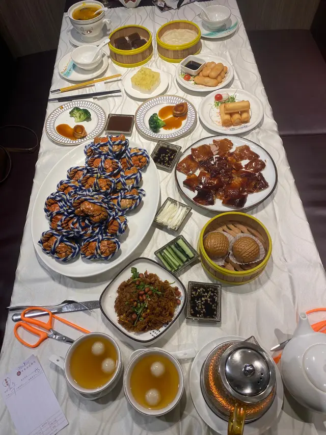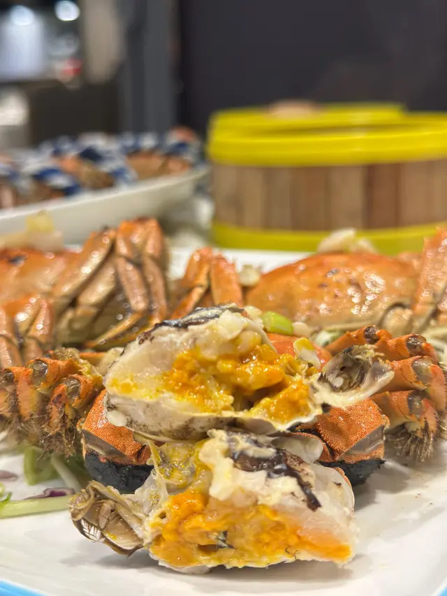 又到大閘蟹🦀季節了,今次同食大閘蟹放題😍小米燴遼參:香濃既雞湯,好濃郁、仲有遼參同小米,口感豐富!絕對有驚喜💕蠔皇8頭鮑魚:鮑汁鮮味彈牙,味道濃郁,如果大隻啲就更加好😆大閘蟹🦀有3️⃣款口味:《清蒸 、花雕 、鹽油焗》大閘蟹蟹膏濃郁,我比較喜歡清蒸及花雕 ,清蒸最能食到鮮味,而花雕有淡淡既酒香味,感覺好暖胃!而鹽油焗就好惹味呢‼️除咗大閘蟹,仲有任食中菜、手工點心、甜品;全都係即叫即整架👍✨北京片皮鴨 :片脆肉嫩✨生炒糯米飯:非常足料,香氣十足✨甜品:紅棗糕、椰汁桂花糕、黑糖糍粑、炸鮮奶、蘋果包、熱情果椰汁糕……當然唔少得 薑汁湯圓、我都飲咗2碗,要驅一驅寒!查看更多