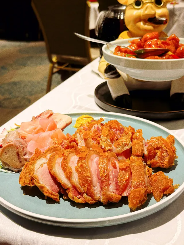 呢間店嘅擺盤真係好絕🤣每道菜上來都要噴煙🤣🤣之後發現好多都係熟客,一入來就係果種返自己屋企一樣😂🦪冰鎮南非鮑魚呢道菜上菜嘅時候真係一絕😍仙氣飄飄。冰鎮處理讓鮑魚保持最佳鮮度同口感,煙韌彈牙😋爽歪歪🍛鮮鳳梨拔絲咕嚕肉🤣呢道菜配左一個🐷托盤,真係好勁🤣👍咕嚕肉真係每次粵菜必點。呢份咕嚕肉肉質更嫩更軟,仲有平時很少見嘅拔絲。搭配鳳梨酸甜結合,甜而不膩😋🦪蜂蜜柚子脆元貝呢道菜好靚!🤩裡面嘅元貝可以保持鮮甜,外面脆皮又酸又甜,非常特別!搭配魚香茄子煲,送飯一流😋😋查看更多