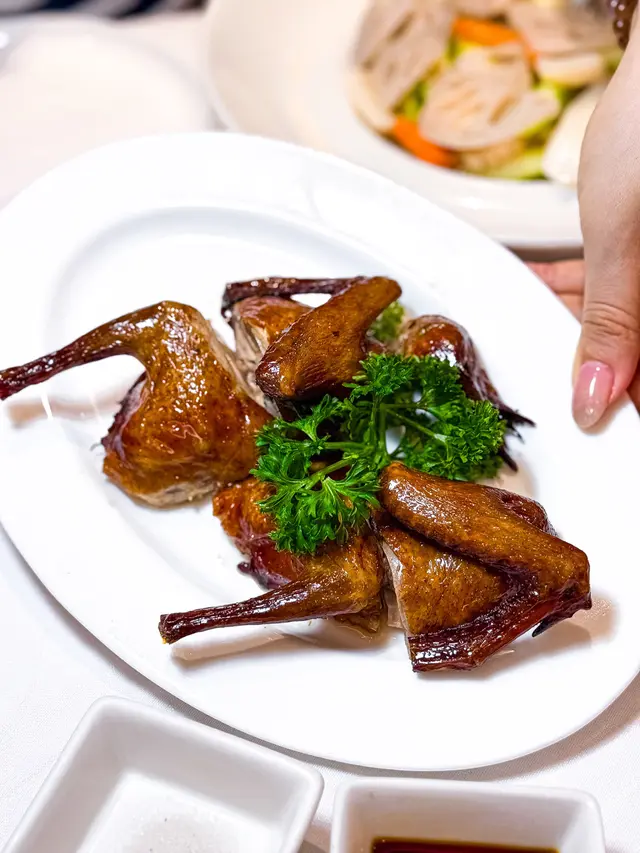 最近同屋企2老去咗尖沙咀文化中心食中菜地點方便好近地鐵站🚉食完仲可以行下海旁帶屋企人嚟都係個唔錯嘅選擇🥰.📍貴妃脆蝦球 (例)|香酥荔茸鴨|脆炸妙齡鴿(1隻)|蘆筍山藥炒藕片|蟹籽蟹肉燴伊麵蝦球沾滿酸酸甜甜嘅醬汁,蝦肉彈牙🦐荔茸鴨有鴨香🦆加上芋泥💜都幾酥脆乳鴿Juicy🤤;食埋蟹肉燴伊麵飽飽🦀查看更多