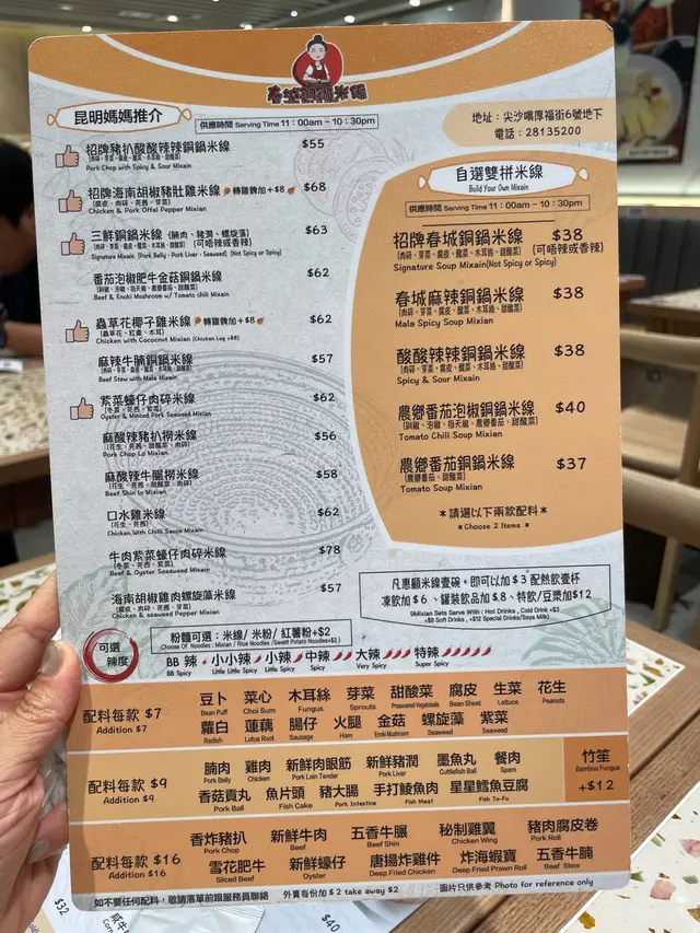 呢間米線OMW同同事無論堂食定外賣都食咗無數次,真心好正,佢無論係湯底、配料、配菜都好好味,食得出佢嘅用心,而且無論食辣、唔食辣嘅都可以食呢間。 🍗配料 (至少兩餸)呢度啲餸好高質!平時OMW嗌香炸豬扒、五香牛展,而今次嗌咗雞肉。💯香炸豬扒好好食,一塊勁大塊,係厚切果種,冇用粉炸,貼心地剪咗,分開上,不會太乾/太咸,肉質頗軟腍,好入味!同事話堂食更好食,OMW就覺得外賣嘅已經好好味,我覺得係呢度必食!💯五香牛展又係好上色、好入味,有3塊(份量唔算好多),味道係恰到好處嘅鹹;口感係啱啱好,唔會煮到爛晒,仲保留倒中間果種膠質感,好正。💯雞肉。唔知有冇人同OMW一樣好唔鍾意啲有膻味嘅雞,呢度嘅雞肉合格,似係新鮮雞(都有可能係有處理得好好嘅冰鮮雞,但似新鮮),有雞味,係好食嘅雞。🉑 唐揚炸雞件,佢新開嘅時候我會叫,有5大粒。不過食咗兩三次之後突然變鹹,因為太鹹之後冇再食lu,但跟米線個價錢有5粒真係好抵,唔怕鹹可以試吓。🉑其他餸推介:我見同事仲會叫蠔仔、螺旋藻,仲有蟲草花椰子雞米線,可以試吓。 🥬米線與配菜米線質感同平時食嘅差唔多,唔會過淋。呢度嘅米線本身有跟:生菜、木耳絲、肉碎、(腐皮)、芽菜、甜酸菜。平時OMW會走芽菜、甜酸菜,腐皮好似見唔到,其他嘅都好唔錯,OMW覺得用高質嚟形容都唔誇張。🉑生菜,雖然個menu冇寫,但平時都會跟一片生菜,唔算好完整,但算叫唔使加錢有菜食。💯木耳絲:好爽脆,增加口感!💯肉碎:好明顯係新鮮豬肉,而且冇碎骨。 💯春城麻辣銅鍋米線 🍜湯底:麻辣湯底(小辣)OMW食開小辣,佢個麻辣好正、好好味,暫時係OMW排名No.1嘅麻辣湯底!食落係有層次嘅麻辣,辣度主要係靠面頭嘅辣油,所以食到尾會冇咁辣咁。如果第一次食呢間麻辣,一定建議BB辣先,之後再加上去🔥辣感真係好個人,畀大家參考返,呢間我食開小辣,譚仔食開五小/三小。除咗麻辣,仲有酸酸辣辣銅鍋米線,大多數同事都係嗌呢個。如果唔食得辣嘅同事,會嗌清湯或者蟲草花椰子雞米線~ 🉑飲品特別想highlight返: 呢度檸檬利賓納同其他嘢飲同價,好吸引! 💜總結:呢度畀OMW感覺係一間用心對待食材,尊重食物嘅餐廳。啲嘢好食,但價錢就$75-$120。我又要講返果句:如果好食嘅話,畀多少少錢都抵。另外,堂食真係用銅鍋上米線,打卡able! 不過食呢間我只係為咗食好食嘅嘢啦😌 💜溫馨提示:堂食嘅話,Lunch都會有人排隊,預返時間,或者早少少。左邊果排有個位冷氣機滴水,唔知整返好未呢?坐低前睇清楚先坐😜 📍 春城銅鍋米線 (💯外賣-尖沙咀)>尖沙咀厚福街6號地舖>香港旺角砵蘭街175號地舖 ✨亮點:無論係麻辣湯底、跟米線嘅配菜,定係可以揀嘅餸都好高質,好好食!Go! 🙇🏻♀️特別嗚謝:勞苦功高、日曬雨淋嘅外賣員! 💡長知識時間:問:春城即係中國邊個城市?答:答案係昆明市。根據維基百科,昆明的別稱是「春城」,因其夏無酷暑、冬無嚴寒、氣候宜人,具有典型的溫帶氣候特點。 #omw食米線 #omw食肉肉 #omw尖沙咀 #omw油尖旺 #尖沙咀lunch #hkfoodie #hkfoodshare #hkkoreanfood #hkrestaurant #香港美食 #油尖旺美食 #尖沙咀美食 #香港米線(以下係幾次嘅食物相📸)…查看更多
