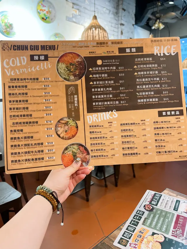平時喺銅鑼灣工作都會嗌呢個春嬌嘅外賣,食佢哋嘅咖喱飯,覺得唔錯。今次咁啱經過附近,試吓今次嘅堂食水準如何。點咗個咖喱牛腩飯,咖喱味道微辣,牛腩軟腍腍入味,個咖喱汁送飯一流,飯嘅份量都算幾多,另外仲有薯仔配菜。另外加咗個龍眼冰,夏日熱辣辣飲杯龍眼冰,好涼快。另外點咗個香茅豬扒撈檬,豬扒嘅份量都幾大塊同埋份量好多,煎到焦香惹味,內裏Juicy,撈檬粉味道酸酸甜甜,夏天食非常開胃。呢度嘅環境裝潢充滿咗越南風情。…查看更多