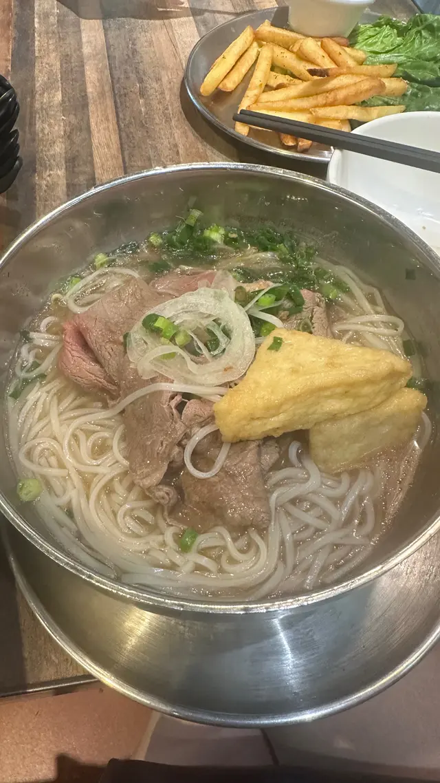 同朋友約出嚟原本諗住食甜品下午茶,點知太餓都係放棄食甜品,食返飽肚嘅下午茶 。行到加路連山道就入咗呢間春嬌越南河,叫咗一個河內生牛肉金邊粉+魚皮頭同埋佢地嘅下午茶,蒜蓉包加奇津薯條。河內生牛肉金邊粉+魚片頭($69)牛肉好腍唔會話硬柴柴,金邊粉好好味係煙煙韌韌嗰款!最推嘅係佢嘅魚片頭,佢嘅魚片頭係平時潮州粉麵檔嘅魚蛋嘅質地嘅炸魚片頭,覺得嚟到都一定要試!蒜蓉包加奇津薯條 ($34)蒜蓉包勁香,超出色!麵包亦都係焗到好鬆脆。奇津薯條食到少少辣味,不過可以再多少少粉,應該會再好食啲🙈…查看更多