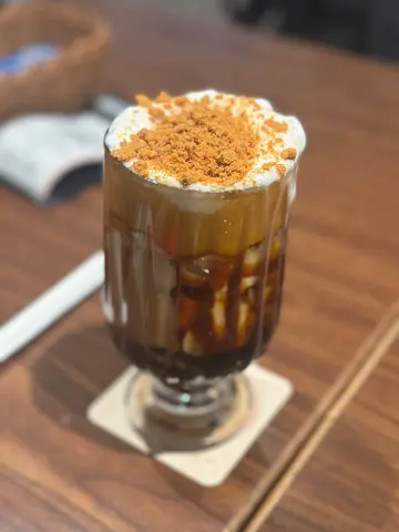去到新城市想食少少野搵個位坐下,依間有甜品同野飲就揀咗 。記得好似曾經算出名過,我地星期日晏晝去都要排一陣隊。🍄🟫鹽酥杏鮑菇新鮮炸出黎都脆脆地🍞珍珠鐵觀音雪糕吐司佢個雪糕有少少似沙冰多啲,吐司都鬆脆唔硬嘅🍨珍珠熔岩蛋糕蛋糕質感偏實淨,唔鬆軟🧋焙茶拿鐵🧋黑糖琥珀珍珠拿鐵🧋珍珠紅豆鮮奶茶野飲正常發揮,大杯嘅整體黎講野食好一般,野飲都還好嘅,不過人均都要大概一百就唔太建議😥