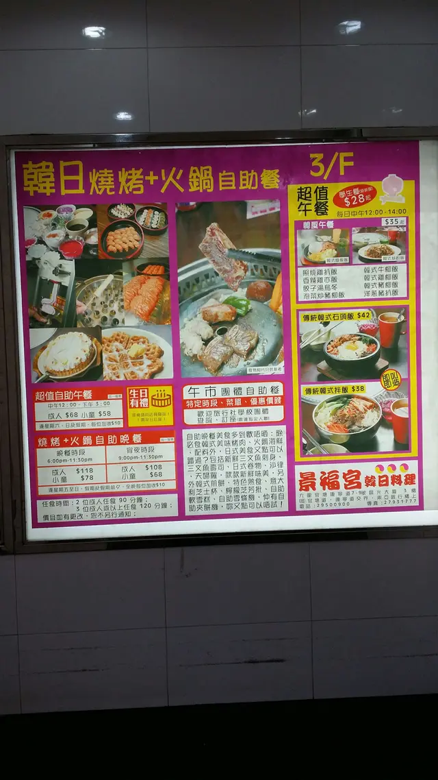景福宮韓國餐廳 (觀塘) 網址: https://s.openrice.com/QrbS0tIS000 地址: 香港觀塘康寧道7-9號晨光大廈3樓 電話: +852 2950 0900