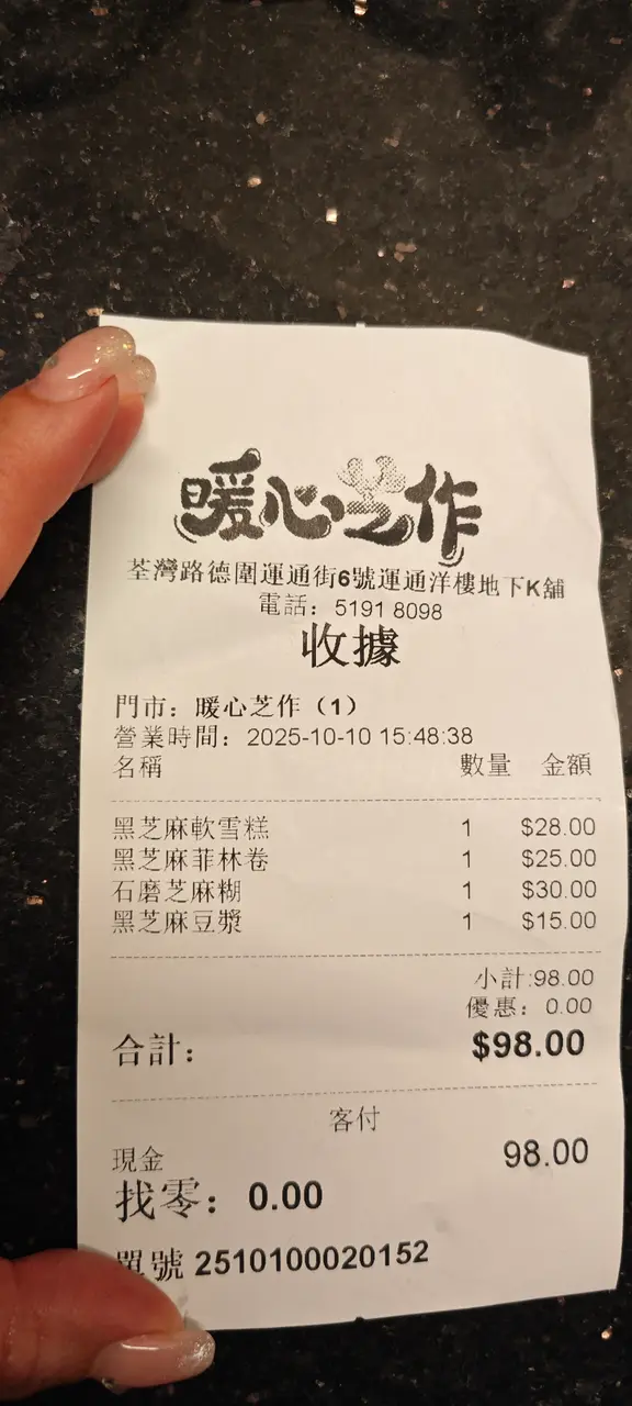 今日喺荃灣有嘢做 之後都係約咗幾個朋友早咗做完 朋友到咗就一齊食車仔麵先食完經過見到呢間 其中一個朋友食過大推佢話另一間分店要排好耐隊 但當日冇長隊..因甜品係第二個胃 我哋食咗以下幾樣嘢食- - - - - - - - - - - - - - - - - - - - - - - -1. 石磨芝麻糊碗嘢深灰黑色 表面少少反光質地都幾光滑 好似融咗嘅朱古力慢磨工藝令質感細膩到「無渣」但又見到一點點黑芝麻 入口即化好濃芝麻香氣 天然微甜 唔會好甜2. 黑芝麻軟雪糕質地軟綿柔滑 食落係冇冰晶 融化就後好似芝麻糊咁濃稠食到好多黑芝麻嘅顆粒感九蒸九曬工藝帶出少少焦香 面頭仲有淋上石磨芝麻醬淋成個口感就係黑芝麻味爆炸濃烈3. 黑芝麻豆漿聲稱有煲足兩小時 質地厚實卻不黏喉仔細睇係有啲細點黑芝麻喺入面豆香同芝麻香平衡得啱啱好 冇豆腥味可能加咗蕎麥 微甜中又帶啲麥香同埋佢有植物蛋白配方 好啱養生人士4. 流心黑芝麻布甸布甸表面光滑如鏡 好似燉蛋一樣嫩滑挖開流心緩緩湧出 流心醬帶啲黏稠感係有驚喜到我 係枇杷蜜同芝麻醬整成外層醇厚微苦 有枇杷蜜清甜平衡膩感同埋佢係低脂配方 食完冇罪惡感XD 5. 芝麻粉最後買咗包芝麻粉 諗住平時沖嚟飲用明顯係純石磨研磨 細膩粉末又冇結塊冇一般市售嘅「粉感」 唔會溶化…查看更多