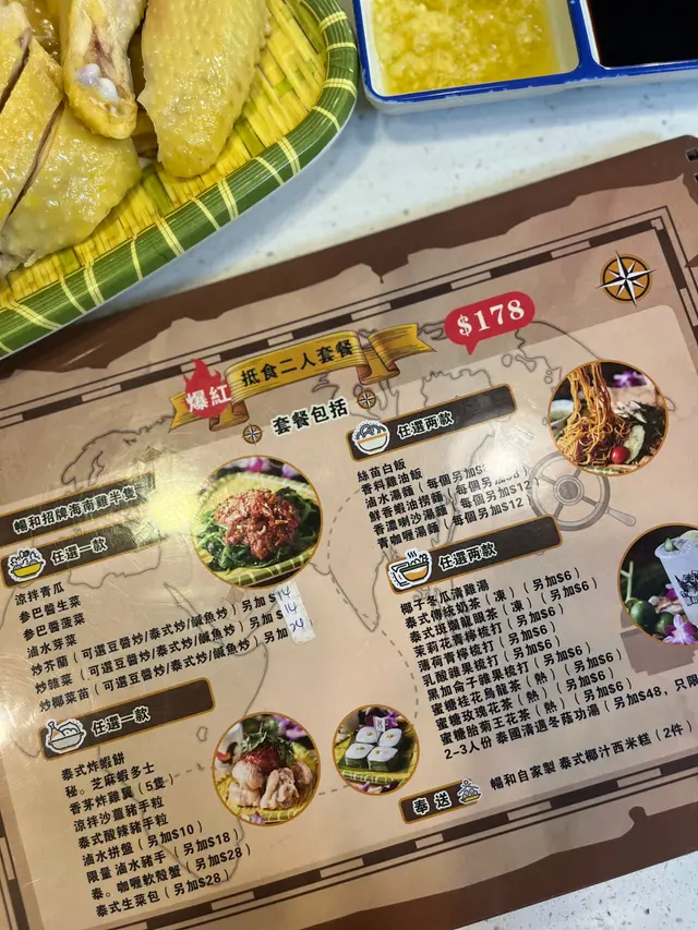 我今日去大埔辦事,順道約同好友去位於大埔太和路14號翠怡花園B座地下15號舖的暢和號食海南雞飯,小店型式,環境舒適,坐得舒服。我點左個抵食二人套餐$178,包括暢和招牌海南雞半隻、參巴醬菠菜、滷水豬手+$18、絲苗白飯1碗、香料雞油飯1碗,套餐飲品係椰子冬瓜清雞湯,及熱蜜糖胎菊王花茶+$6,甜品是泰式椰汁西米糕2件。暢和招牌海南雞的雞肉鮮甜嫩滑,菠菜新鮮清甜,滷水豬手軟腍入味,雞油飯好香口又好味;清雞湯清甜,胎菊花茶好飲。…查看更多