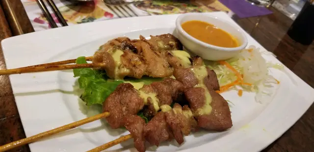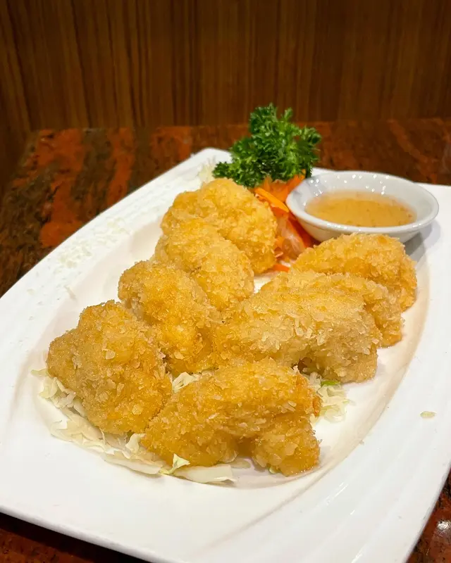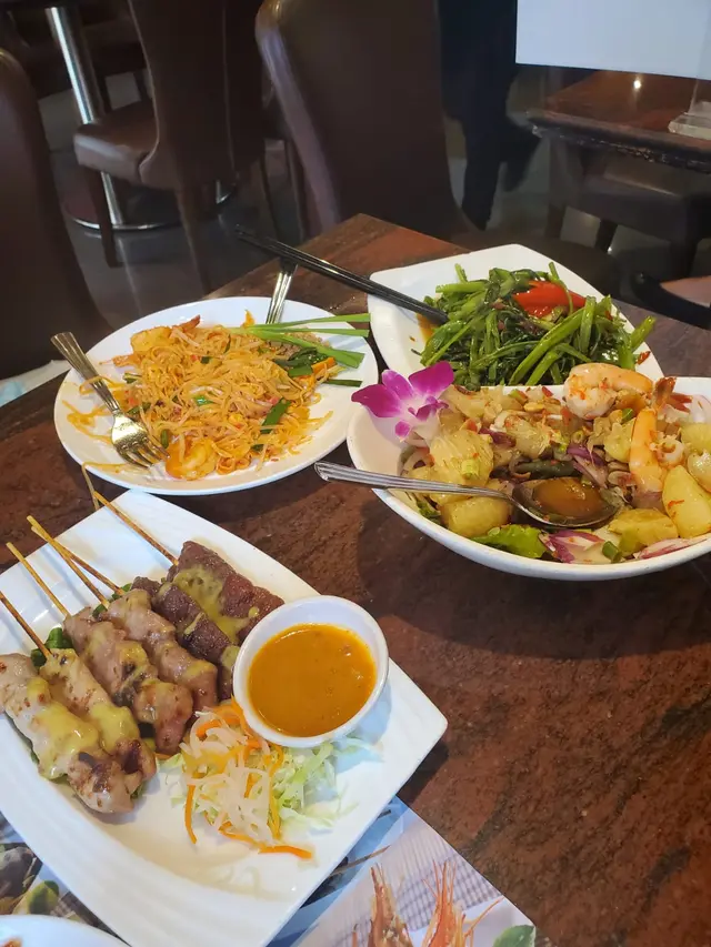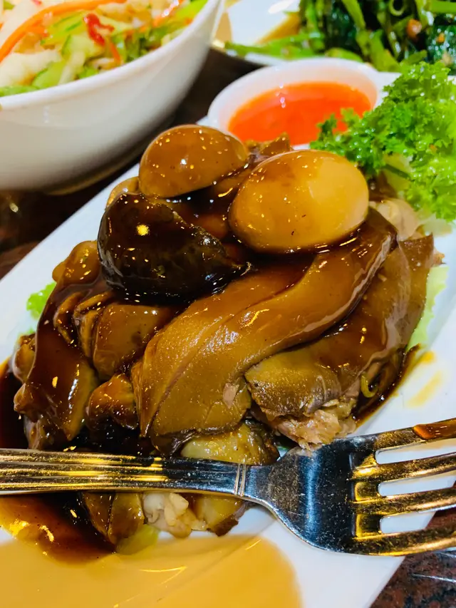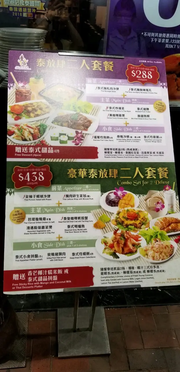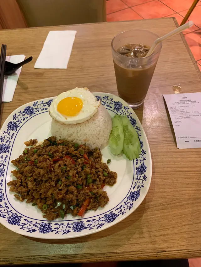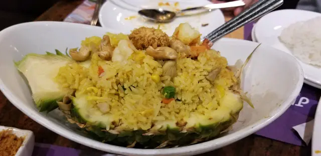 細細個 (2X年前),嚟到北角已經見到呢一間店 (主要係記得門口個雕像)。諗住做到咁多年,應該都掂啦。點知出事囉...外賣【菠蘿炒飯】同【海南雞飯】(各$58)。份量上係正常的 (參考大X樂果D)【菠蘿炒飯】- 外觀:冇腰果冇肉鬆。- 味道:除咗菠蘿之外冇咩味。- 評價:真係菠蘿 + 炒飯。完。【海南雞飯】- 外觀:隻雞嘅顏色好慘,有骨(平身都ok)。- 味道:隻雞好鞋!好唔掂- 評價:大X樂果D快餐店都比佢好,咁點解仲可以叫自己做泰菜?- 額外:附送一個湯,鹹到傻咗。結論:sorry冇相。外觀上冇咩特別。但老店... 不如退休啦。…查看更多