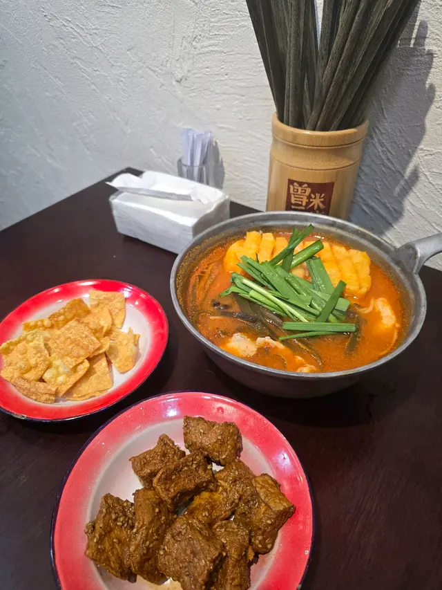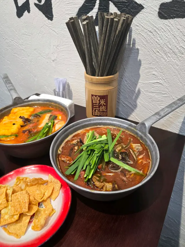 【元朗區】【曾三仙米綫】同莊敬哥去元朗做嘢,梗係搵埋嘢食,之前試過呢間米線舖覺得正,帶佢試埋元朗分店。佢就試 $60 嘅「藤椒三仙米線」,係呢度招牌菜嚟,已經有鵪鶉蛋、肉絲、竹笙、木耳、午餐肉、蟲草花、豬肝、番茄、黃花喺入面,麻香十足,成碗嘢感覺好豐富。我就試 $64 嘅「冒烤鴨米線」,個湯底勁濃鴨味,原來係由鴨油同雞油整,配埋重慶烤鴨,好惹味,個人幾偏愛呢個湯底,係咁食。之後試多兩款小食,首先係 $18 嘅「糍粑油條」,幾特別,將糍粑同埋油條整埋一齊,甜甜哋,有少少脆口,一碟有兩件嘅。跟住試 $22 嘅「鍋巴土豆」,估唔到咁好食,將薯仔整到脆皮同甜甜哋,我同莊敬哥都覺得好好食。嘢飲方面,莊敬哥飲「冰糖山楂凍」,佢話水準 okay,我就飲「百香茉莉茶」,我覺得都可以,唔似係平時啲餐廳飲到嘅嘢。整體都唔錯,侍應服務都殷切。。。(地址:元朗西菁街10號好順泰大廈地下16-17號舖)所有分店地址:📍元朗西菁街10號好順泰大廈地下16-17號舖📍太子花園街228號地舖📍天后琉璃街7號地舖#1amfoodie #foodie #hkfoodie #thatfoodiething #hkfood #food #instafood #yummy #foodlover #delicious #foodies #tasty #globaleats #tastyfood #foodpics #followforfollowback #love #eat #1am元朗區 #元朗 #朗屏 #康樂路 #大棠路 #曾三仙米綫 #藤椒三仙米線 #冒烤鴨米線 #糍粑油條 #鍋巴土豆 #百香茉莉茶 #冰糖山楂凍 #1am1885 #1ambackup…查看更多