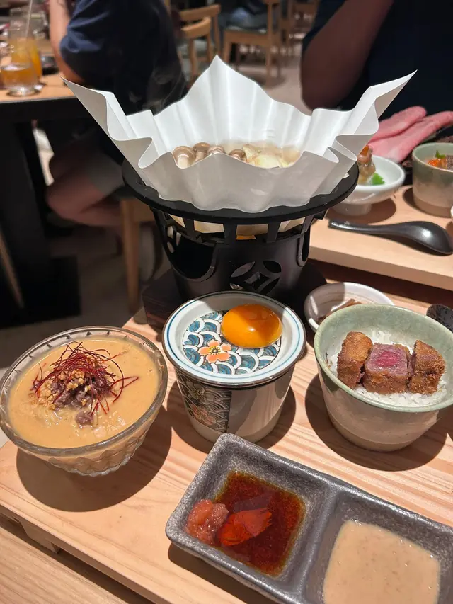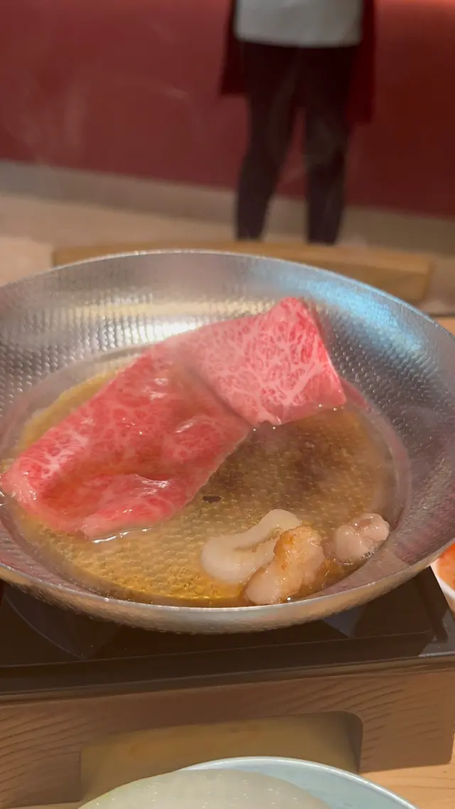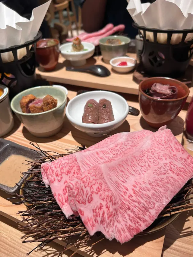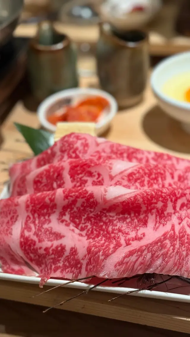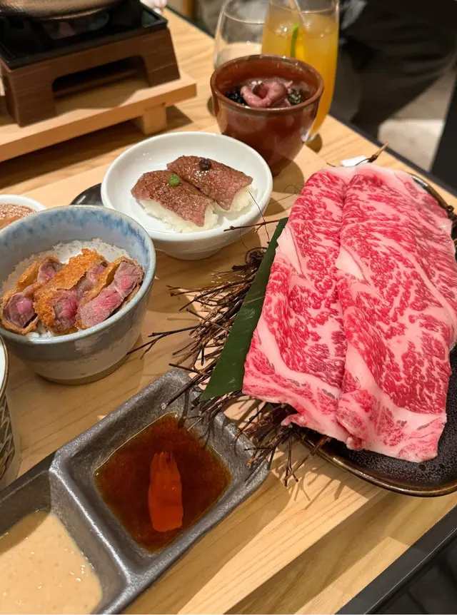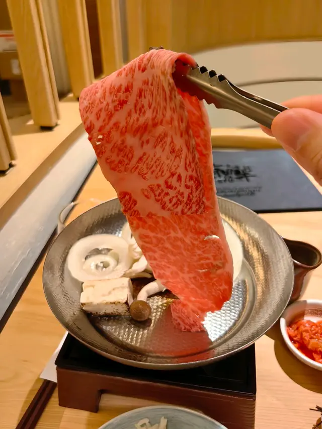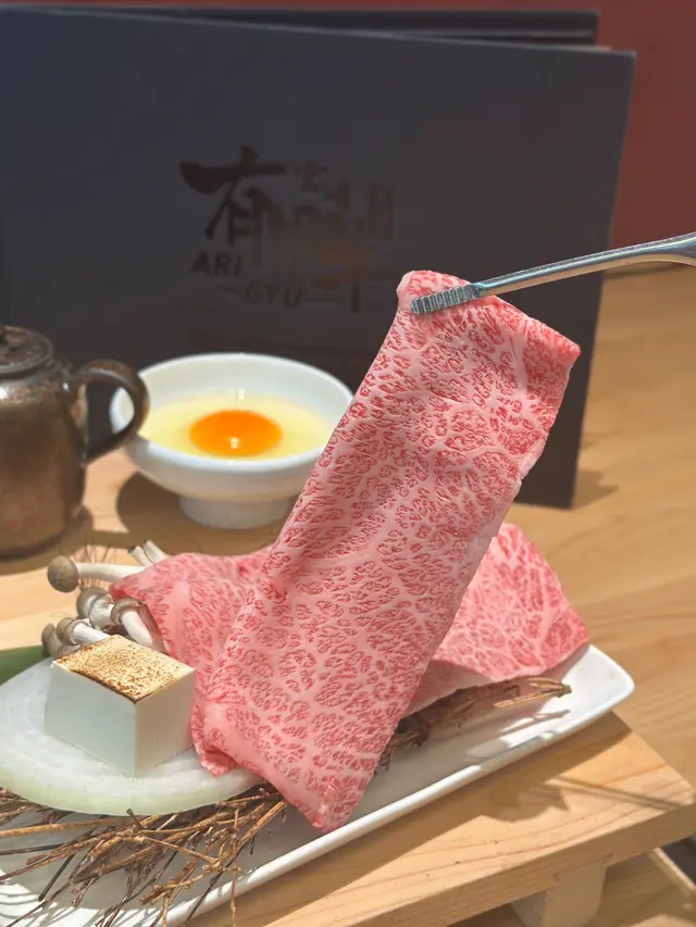 最近去咗沙田 🚇 一間超高質嘅壽喜燒 🍲 / 涮涮鍋/燒肉店「有田牛」,入面裝修簡約得嚟又帶點和風 🪑 雅致,木質傢俱同柔和燈光 💡 營造出一個好舒服 🌿 嘅用餐氛圍。佢哋係日本 🇯🇵 宮崎農場,引入咗多次榮獲內閣總理大臣獎 🏆 嘅A5黑毛和牛「有田牛」🐮,所以餐廳都係叫呢個名。佢哋獨家將原隻A5和牛 ✈️ 直送到香港,省卻咗中間好多成本 💰,所以定價幾乎貼近日本當地 🎌 嘅售價,性價比真係幾高 👍!今次我就揀咗😆「一人壽喜燒定食(120g西冷)」,個餐一上枱,🤩見到嗰碟西冷和牛嘅油花分佈真係幾靚 ✨。呢度採取💪自助形式,我係個鍋度輕輕煎香 🥢 和牛,鎖住肉汁 💦,然後再倒入特製嘅關西風壽喜燒汁。當牛肉喺熱騰騰 🔥 嘅壽喜燒汁入面輕輕一涮,轉眼間就變咗誘人嘅粉紅色 🥰,夾起一塊沾上生蛋汁 🥚 再放入口,嗰種入口即溶 🤤 嘅感覺,牛脂嘅甘香同壽喜燒汁嘅甜味完美結合 💫,真係令人好滿足 😌!定食仲配有新鮮蔬菜 🥬 同埋香噴噴嘅白飯 🍚。食完和牛,再將蔬菜放入壽喜燒汁度煮 🔥,吸晒和牛嘅精華 😍 同壽喜燒汁嘅甜味,清甜又解膩 🌿。…查看更多