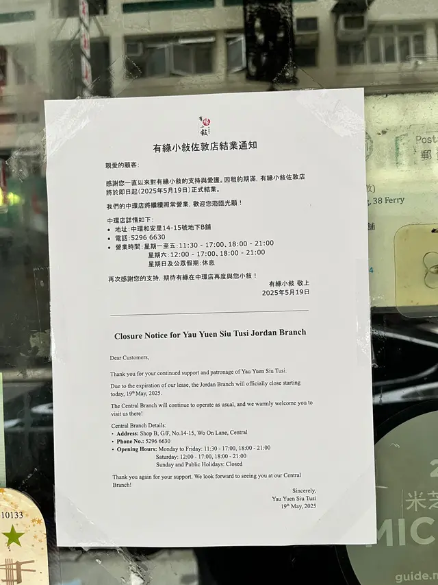 有緣小敍 (佐敦) 網址: https://s.openrice.com/QrbS0xTK200 地址: 香港佐敦文苑街36號文耀樓地舖 電話: +852 53002682