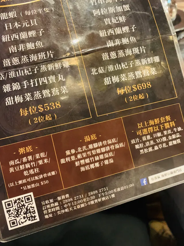 農曆新年嗰排,屈得係屋企太耐,同女朋友去咗南丫島行山,之後就過咗尖沙咀食火鍋。一入到去,餐廳唔算太多人,但反而冇平時咁人迫人坐得仲舒服左。今次老闆親自招呼我哋,推介左個海鮮餐俾我哋,仲有自己落手落腳幫我地蒸海鮮。今次嘅海鮮餐包括鮑魚,海蝦,蚌等等,我見材料都非常新鮮,食落去好Juicy,有咬口。我自己其實非常鍾意食海鮮火鍋,因為佢最能夠帶出海鮮嘅鮮味,去到最尾海鮮嘅精華仲會滴落去下邊嘅粥底入邊,煮埋個粥食簡直係一流。雖然呢排大家可能都唔係咁想去食火鍋,但我又覺得只要注意個人衛生的話,食火鍋應該都冇大問題嘅。…查看更多