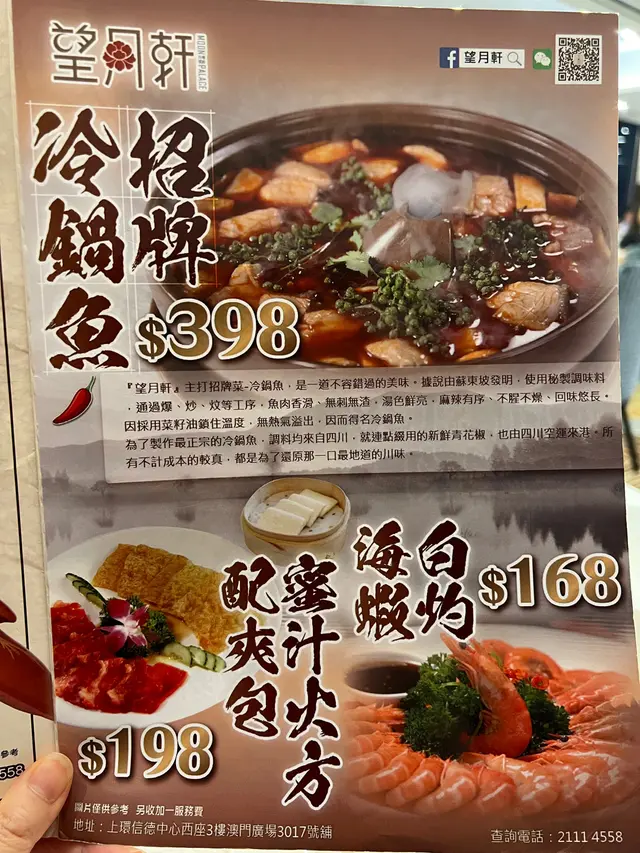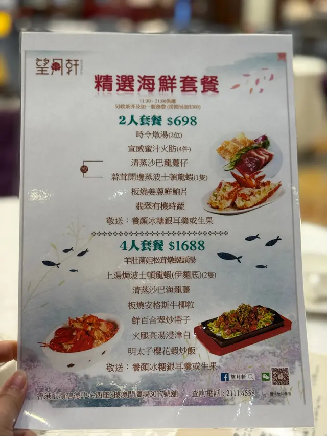 位於上環的粵菜館。每次在信德中心無非也是搭船來回澳門,而最近因事去澳門快閃一日,回港後急需醫肚,便超級隨意的就地選了這間望到海景,又看上去格局企理的中菜廳。⋆_____ᴛᴏᴛᴀʟ ᴏʀᴅᴇʀ______⋆✿ 孖寶優惠 (自選兩款小菜) $368⧐ 蒜蓉開邊蒸波士頓龍蝦⧐ 蒜香脆皮雞(半隻)酒樓的孖寶套餐其實很抵食,可供選擇的菜式亦很豐富又大器,除了龍蝦,還可以選擇沙巴龍躉、白灼海蝦、蜜汁火肪等較昂貴的菜式。先說龍蝦,龍蝦肉質厚實,入口鮮甜彈牙;大量蒜蓉鋪面,香氣撲鼻,爆炒後既不會搶走龍蝦本身的鮮味,反而提升整體層次。粉絲是精華所在,吸滿湯汁和蒜香後,啖啖鮮美,既入味又飽足。而蒜香脆皮雞炸得香脆,金黃誘人,可惜雞肉未算非常嫩滑;幸好配搭蒜香調味,也算鹹香惹味..✿ 雲南鮮天麻汽鍋雞 $88/位汽鍋雞的湯底清甜潤喉,即使在夏天飲用也不會覺得燥熱,養生又滋味.✿ 麻辣乾鍋耗兒魚是店員推介的一道菜。耗兒魚其實不知道是甚麼魚,但據說老是常出現在川菜中;反正魚肉炸得夠香脆,魚肉也很嫩滑,這樣便已足夠了。而麻辣乾鍋的香氣十足,辣而不嗆,配合蔥段、花椒及香料,十分惹味。.✿ 四川宮保雞丁雞丁份量充足,加入花生和芹菜翻炒香味四溢,配飯一流。不過調味略嫌淡口,如果能調整香辣程度,應該會更惹味。…查看更多