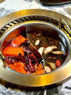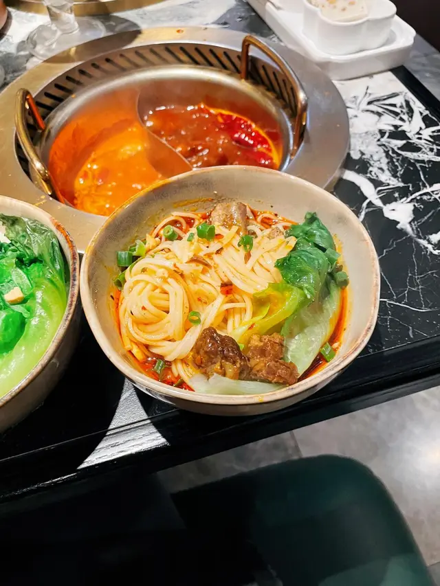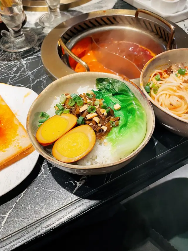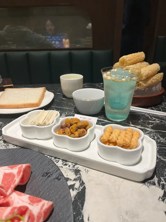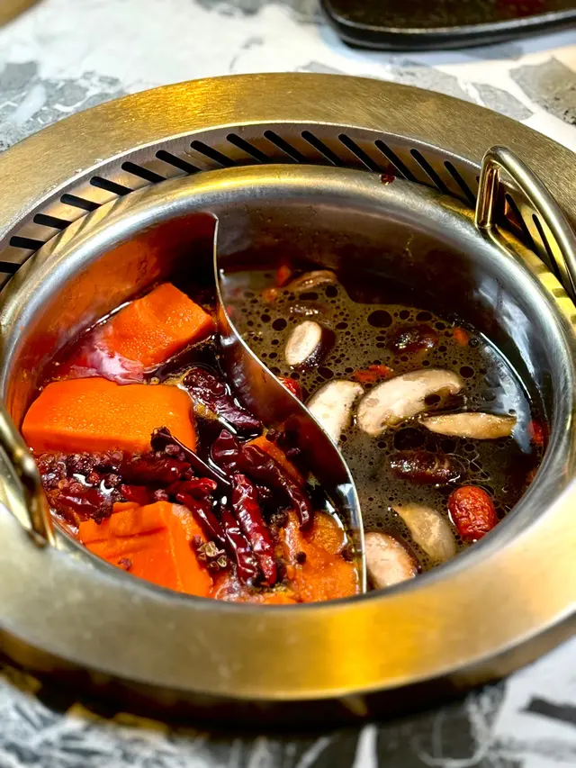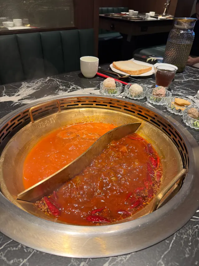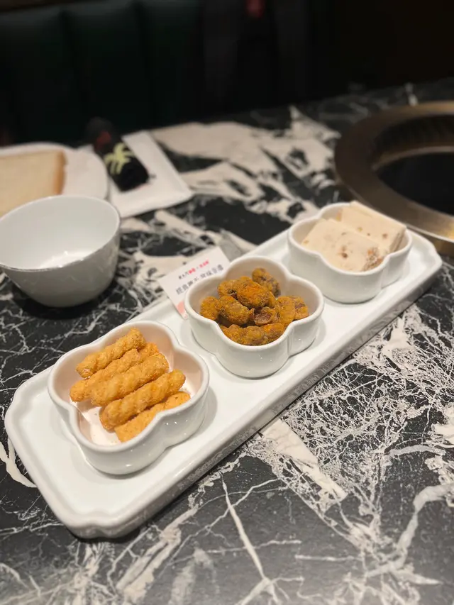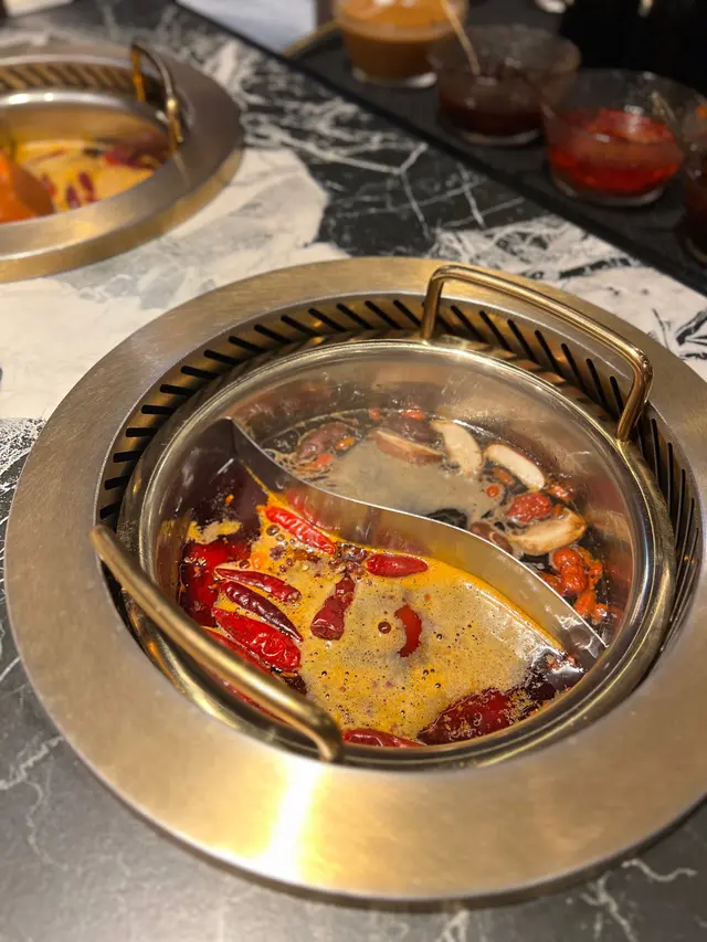 最近和朋友相約在中環的“朝天門”重慶火鍋店小聚。火鍋店裝修融合了中式傳統與現代風格,環境寬敞明亮。發現了火鍋店有包廂和K房,但注意到店內設有獨立房間,適合多人聚會或想邊吃邊唱歌的客人,私隱度和娛樂度都不錯。我們點了一份“商務雙人套餐”,內容很豐富,性價比極高!服務方面,店員態度親切,加湯、換碟都很及時。一開始先上了“重慶小吃組合”,包括辣味蠶豆、脆麻花和雲片糕。蠶豆香辣酥脆,麻花甜甜哋脆卜卜,雲片糕軟糯清甜,入口粉粉的很特別,幾款小吃都有特色。鍋底選了“玉璽鴛鴦鍋”——麻辣湯底和菇菌湯底。麻辣湯香濃醇厚,辣度可選,麻味循序漸進越煮越香;菇菌湯則清淡鮮甜,適合涮蔬菜和提鮮。值得一提的是,每人前面都有一片白麵包,覺得好新奇,後來店員介紹是用來吸走食材表面多餘油分的,真的很貼心!多款調味料西班牙黑豚梅肉脂肪分布均勻,肉質細膩,涮麻辣湯底尤其香。特色三拼包括黃喉、黑毛肚和鵝腸,都非常新鮮,鵝腸只需涮幾秒,口感脆嫩無腥味。丸滑拼有牛丸、蝦滑、墨魚滑和魚腐,手工製作的口感彈牙,蝦滑特別鮮甜。蔬菜有娃娃菜和金針菇,吸飽湯底後非常入味。8秒響鈴名不虛傳,輕涮即軟,豆香濃郁。春捲炸得酥脆,牛肉面牛肉味道濃郁,微辣的口味,最後以烏冬收尾,飽足感十足。若下次有朋友聚會或慶生,不妨試試他們的包廂或K房,邊唱邊涮,應該會更盡興。…查看更多