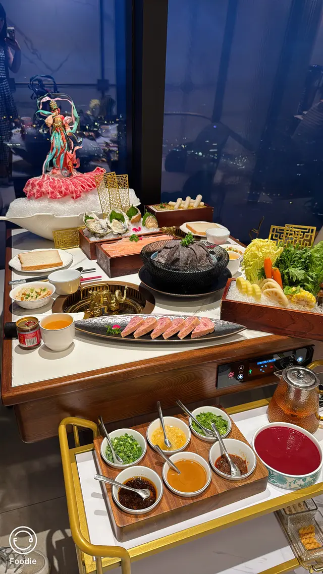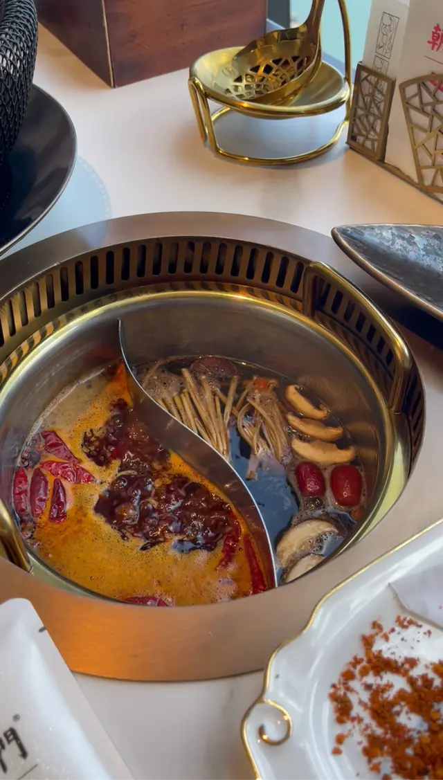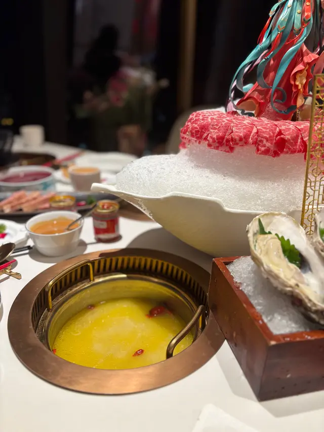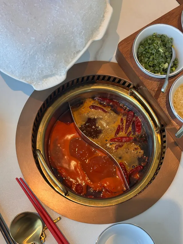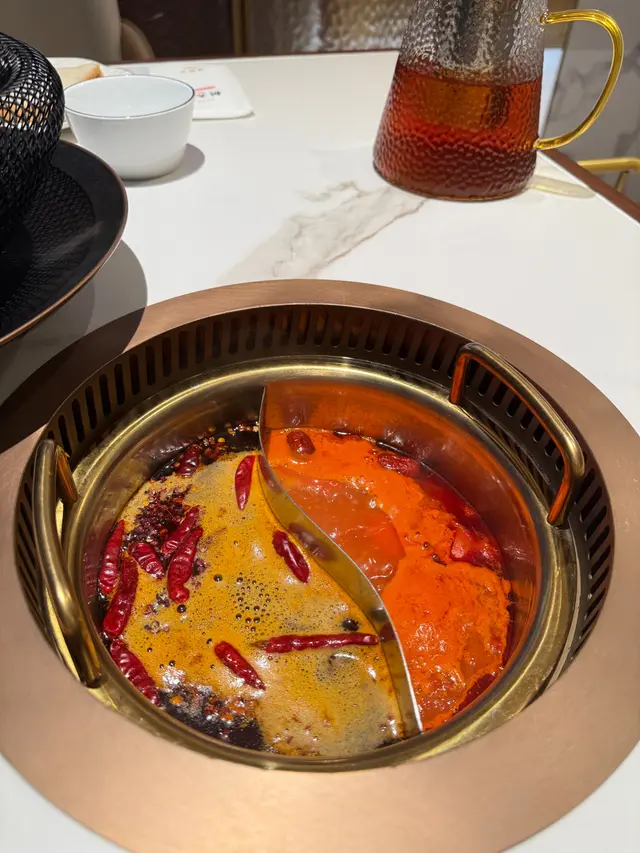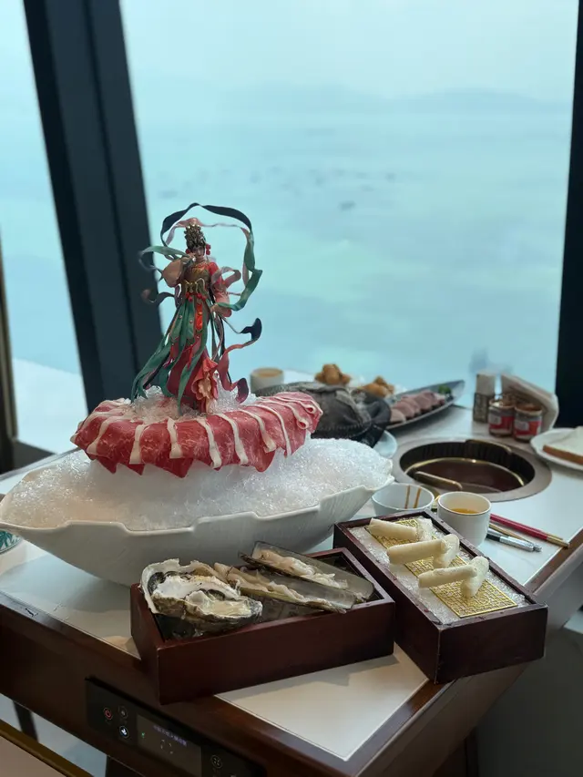 位於海旁的火鍋店,是品牌在香港開設的第二間分店,不僅延續了招牌的高質火鍋風味,更加入了本地獨有的地理優勢 —— 坐擁無敵海景。店內裝潢時尚摩登,空間寬敞,落地玻璃窗引入自然光和開揚海景,無論日景還是夜景都令人陶醉。更特別的是設有可唱K的私人廂房,讓食客可以一邊享受美食,一邊高歌歡聚,非常適合朋友聚會或慶祝活動。我們這次點選了麻辣口味與菌湯口味、以及麻辣與板栗雞口味的兩個鴛鴦鍋作為湯底搭配。麻辣鍋底香而不嗆,辣度可以調節,花椒香氣十足但不會掩蓋食材本味;菌湯則清甜順喉,入口後能感受到多種菇類熬煮後的鮮味;板栗雞湯則香濃帶甜,有濃郁的家常風味,十分適合搭配肉類與菌菇類食材。在配料方面,最令人驚喜的是極品鮮毛肚,片薄而爽脆,涮幾秒即熟,口感彈牙,每片都處理得乾淨無異味,值得一讚。冷鍋鴨血,麻辣滲透入鴨血之中,口感滑嫩,帶有微微辣香,是火鍋的絕配小菜。另一道招牌菜烽火戲豬喉,以豬喉平放在烽火台上桌,打卡感十足;豬喉經特別處理,口感爽滑,涮熟後吸附湯底香氣,是店內必試的特色菜。海鮮方面,我們選了海鮮拼盤,鮑魚新鮮彈牙,蠔肉飽滿無腥味,食材新鮮度令人滿意。肉類方面,安格斯雪花牛肉拼F4純血和牛皮腱絕對是肉食控的天堂。安格斯牛雪花分布均勻,入口柔嫩油香;F4和牛皮腱則肉味濃郁,不韌,涮煮後口感豐富。黑虎蝦滑牛肉丸也相當出色,蝦滑用料實在,吃得出蝦肉的鮮甜,而牛肉丸彈性十足,肉汁豐富。素菜方面我們點了田園山珍拼盤,內含多款新鮮蔬菜和菌類,洗得乾淨整齊,口感爽脆,是火鍋中不可或缺的平衡元素。肉多多午餐肉亦是一大亮點,厚切片狀不易煮爛,入口鹹香滿滿,極具懷舊感。黑松露和牛炒飯絕對值得一試。炒飯粒粒分明,黑松露香氣濃郁,與和牛碎的油香互相融合,香氣四溢,是火鍋後的完美收尾。而甜品方面的椒香酥肉拼紅糖餈粑軟糯香甜,外脆內糯,紅糖醬濃郁不膩,為整頓豐富的火鍋餐畫上完美句號。總結來說,這間火鍋店不單提供高質素的食材和多元化的選擇,更結合無敵海景與K房設施,提升整體用餐體驗。無論是節日慶祝、朋友聚會還是家庭聚餐,都能在這裡找到樂趣與滿足。作為品牌在香港的第二間分店,無論在服務、環境或菜品質素上都展現出極高水準,絕對值得一訪再訪。…查看更多