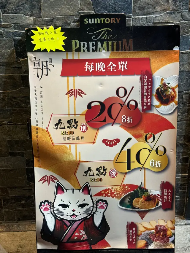 朝 (太子) 網上訂座享低至6折優惠兼賺Rice Dollars 網址: https://s.openrice.com/QrbS0WBCA00 地址: 香港太子大南街39號地舖 電話: +852 53237163