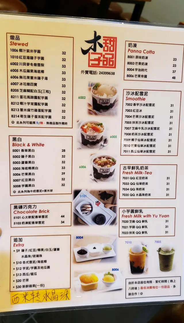 木子甜品 (荃灣) 網址: https://s.openrice.com/QrbS0yUI0W0 地址: 香港荃灣荃華街16號荃薈地下G31-33號舖 電話: +852 24399638