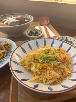 湯頭唔會好多油花 適合飲返一啖牛筋半透好似啫喱 入口即化牛腱帶有油花紋理 纖維吸飽湯汁牛肚層次分明 咬落軟中帶韌搭配粗麵、青蔥 湯頭醇厚回甘2. 蟹肉明太子炒新竹米粉
