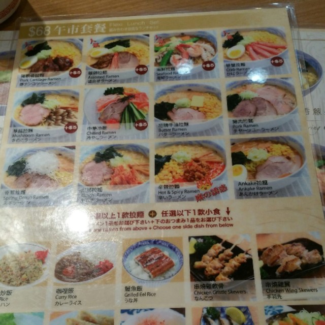 【溫馨提示】❶ 自選二人套餐可選 2 款拉麵或飯和 3 款小吃。❷ 大部份拉麵和鰻魚飯須另加 HK$10 或 HK$15❸ 小食選擇多元化❹ 經常滿座,大家要提早到達,否則要排隊等候。❺ 可以儲印花換優惠劵