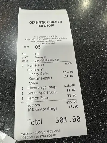 今次我約左朋友食飯,佢話想食韓式炸雞,大大份咁食勁開心,大家傾完就決定去尖沙咀食李家,地點大家都方便🇰🇷粟米炸雞(半隻)($123)佢地個炸雞做到外面脆,裡面多汁,呢個粟米炸雞就係原味炸雞再配幾件粟米,個粟米幾甜,如果可以好似中式小菜加椒鹽整就仲正🌽青辣椒蛋黃醬炸雞(半隻)($123)呢個青辣椒蛋黃醬炸雞佢超多醬,佢唔算好辣,個蛋黃醬味比較濃,我呢d鐘意多醬既就岩曬🐥泡菜湯($168)個泡菜湯裡面都幾多料,有豬肉,金菇,泡菜,酸酸辣辣咁,好味又開胃😋Non Alcoholic Beerita Cocktail($78)Apple cider Rita Cocktail($88)我地每人叫左一杯飲品,佢賣相好夏日feel,我飲既apple cider易入口,幾甜,我朋友就唔飲酒,叫左無酒精既西柚味版本,都係清爽🍹呢度既炸雞幾高質,酥脆多汁,一人半隻真係好飽,加埋個泡湯菜真係飽曬,食完飲番杯傾計hea下就岩曬😄…查看更多