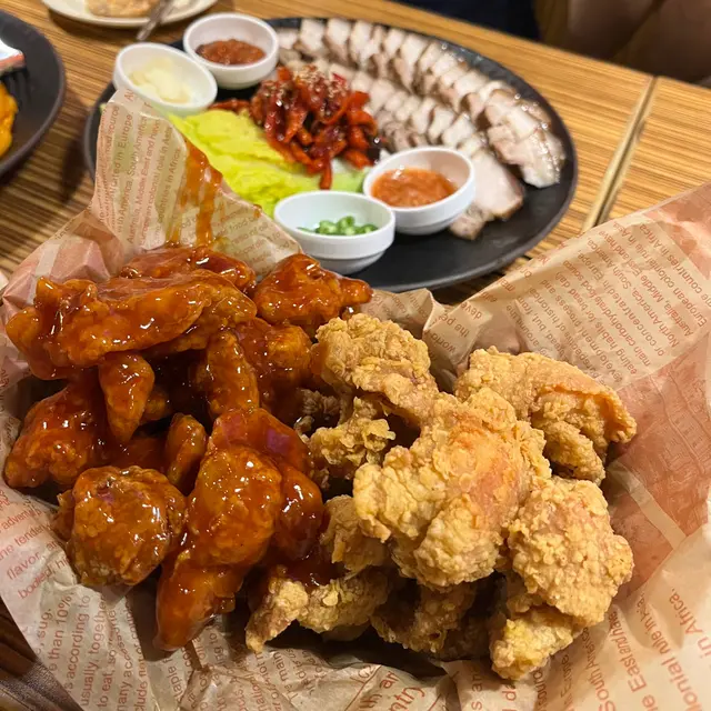 大隻仔今次覓食嘅店舖就係💥 李家 💥 大隻仔今次介紹一間尖沙咀頗有名氣嘅韓國餐廳,餐廳由韓國人主理,味道十分之正宗,而且每一碟份量都非常之大碟,好適合一班朋友食飯聚會。⋯⋯⋯⋯⋯⋯⋯⋯⋯⋯⋯⋯⋯⋯⋯5⭐️ 超班3⭐️ 一般/正常1⭐️ 差味道 ⭐️⭐️⭐️⭐️抵食 ⭐️⭐️⭐️⭐️⭐️服務 ⭐️⭐️⭐️⭐️⭐️環境 ⭐️⭐️⭐️⭐️加一服務費 ✅⋯⋯⋯⋯⋯⋯⋯⋯⋯⋯⋯⋯⋯⋯⋯⋯🔥 半半炸雞(原味+甜辣) $188一次過可以滿足兩種口味,原味炸雞炸到外皮十分香脆,甜酸炸雞帶少少微辣,甜甜地更加好味。🔥 鐵板燒豬肉 $168份量超級大碟,整隻鐵板都滿晒韓式燒豬肉,燒豬肉肉質非常嫩滑,煮到啱啱好唔會乾唔會柴,吸收晒韓式燒汁非常好食。🔥 年糕餃子湯 $98有六隻韓式餃子,再配上年糕湯非常飽肚,年糕非常煙靭好好食,可以加入附送嘅泡菜以增加味道。…查看更多