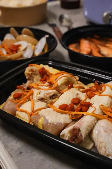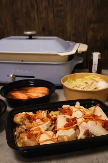 今日同女朋友買咗個雞煲餐返屋企嘆二人沉醉雞煲套餐🐟 海鮮+雞三重奏-杞醉蝦🦐:鮮甜肉厚,杞子酒微香滲入蝦肉,清香又彈牙!-杞醉花甲🐚:花甲吸滿杞香酒,微鹹帶濃濃酒味!-杞醉濃湯雞煲(半隻)🍗:主角登場!雞件嫩滑非常入味,杞子紅棗湯底甘甜,暖胃又醉人!🍢 Hotpot 加料-手打乜乜滑:蝦滑+墨魚滑,彈牙滑溜,吸晒湯精華!-五花腩豚肉片🐷:有煙肉之感覺!-手工菠菜豚餃子🥟:一啖爆汁!-蔬菜盤:吸湯鮮甜,健康又平衡-米線(2份)🍜🍡 甜品收尾-手工芝麻湯圓(4粒):皮薄芝麻餡超香甜!🌶 特製醬料-杞辣醬油:香辣帶麻,類似口水雞辣汁!-爆炸蔥醬油:蔥香濃郁,惹味!總括嚟講,又估唔到幾煎喜,值得一試。…查看更多