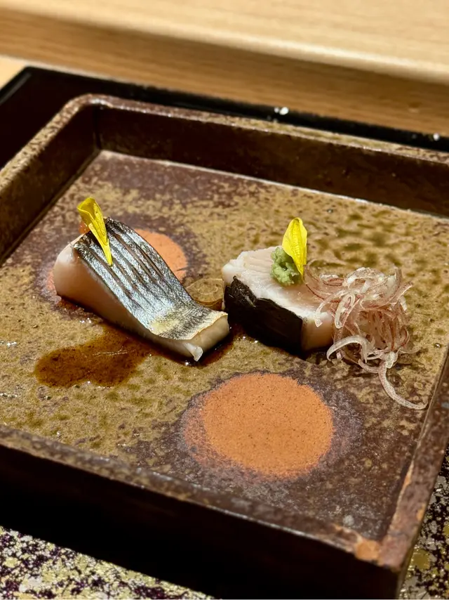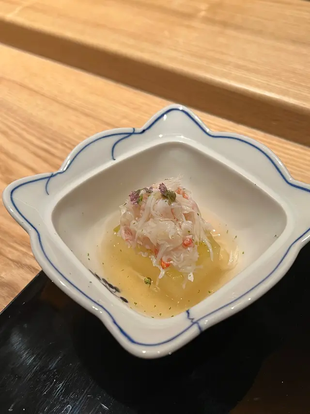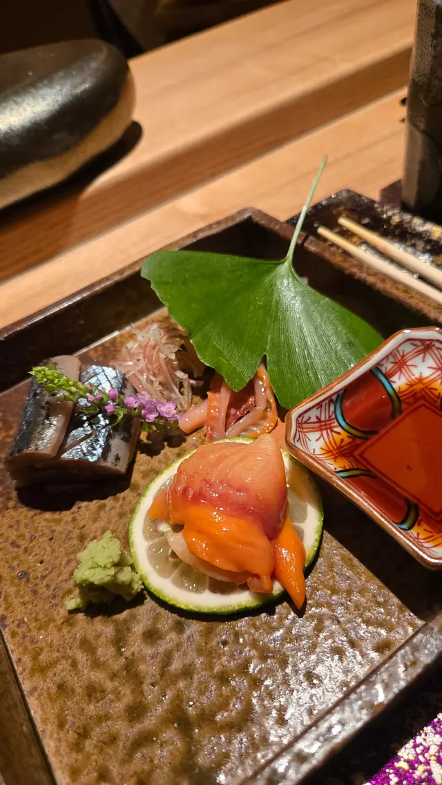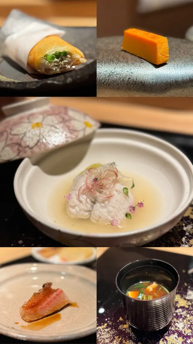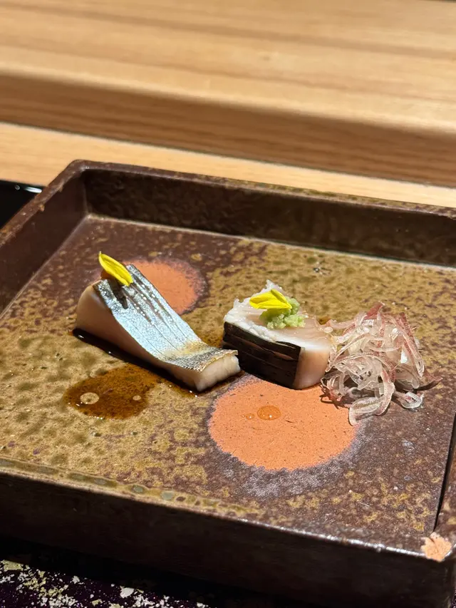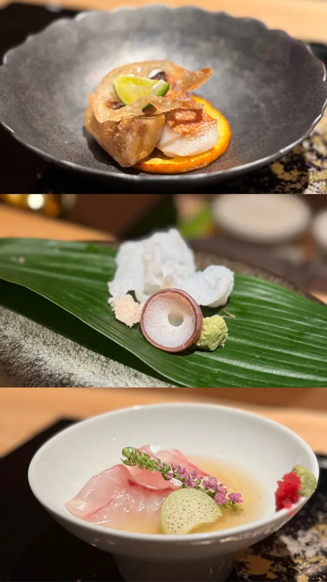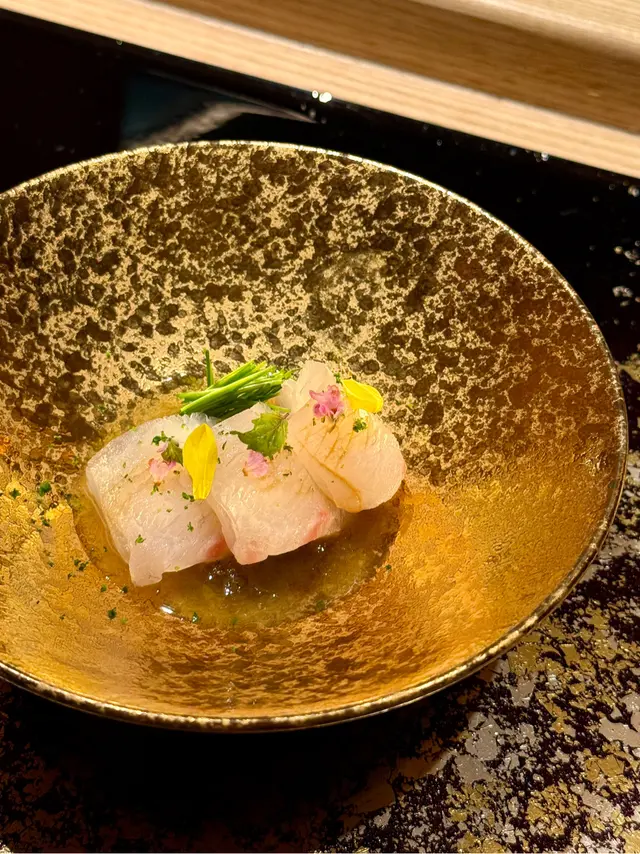 自己生日,揀咗間矜貴嘅Omakase 慶祝一下🤗。呢間日本餐廳喺中環黃金地段,外牆黑色設計超級型,入邊係好靚嘅和式田園風格,一入去已經令人覺得好放鬆愉悅。餐廳座位全壽司吧枱,可以望住師傅一邊處理食材,一邊傾偈,一邊食。🔶先付➖即燒鱈魚乾➖兵庫縣金海老,上面有已經調味的筋子,仲有白蘿蔔粒,非常清甜。🔶前菜醬油煮八爪魚,配Wasabi,八爪魚非常軟腍腍。🔶當造刺身➖天然石雕魚,比較挺身,肉質彈牙,可配鹽/Wasabi/酸汁調味。➖有魚之王之稱的兵庫県明石真鯛,用昆布漬做法,食落軟身,有淡淡昆布甘甜味。➖北海道爽滑脆甜的赤貝,當造肥美又厚肉的秋刀魚。🔶揚物➖蟹肉做的炸春卷,上面撒有烏魚子,食落啖啖蟹肉蟹膏,口感豐富。🔶酒肴➖目光魚,係小型深海魚。魚皮烤得香脆,魚肉軟滑多油,在口內化開,魚油味充斥滿過口腔。無花果用赤酒蒸煮過,有淡淡酒香味道,又會食到無花果嘅果香。🔶煮物➖松葉蟹斧飯加魚翅松葉蟹一絲絲,海鮮香味融入飯,加上熬煮好嘅魚翅,呢碗飯好矜貴。🔶壽司五貫➖中拖羅、關池魚、赤身、海膽吞拿魚蓉紫菜卷、鯖魚昆布卷魚肉質鮮嫩肥美,脂厚油香,入口魚油甘香細膩,齒頰留香。🔶吸物➖赤麵豉湯,入邊有魚肉同豆腐粒。🔶甜品➖秋天栗子特別甜,做自家製栗蓉,配有哈密瓜味道清新作結。呢餐生日飯非常滿足,試到好多比較特別嘅食材,係高質高檔嘅日式餐廳。…查看更多