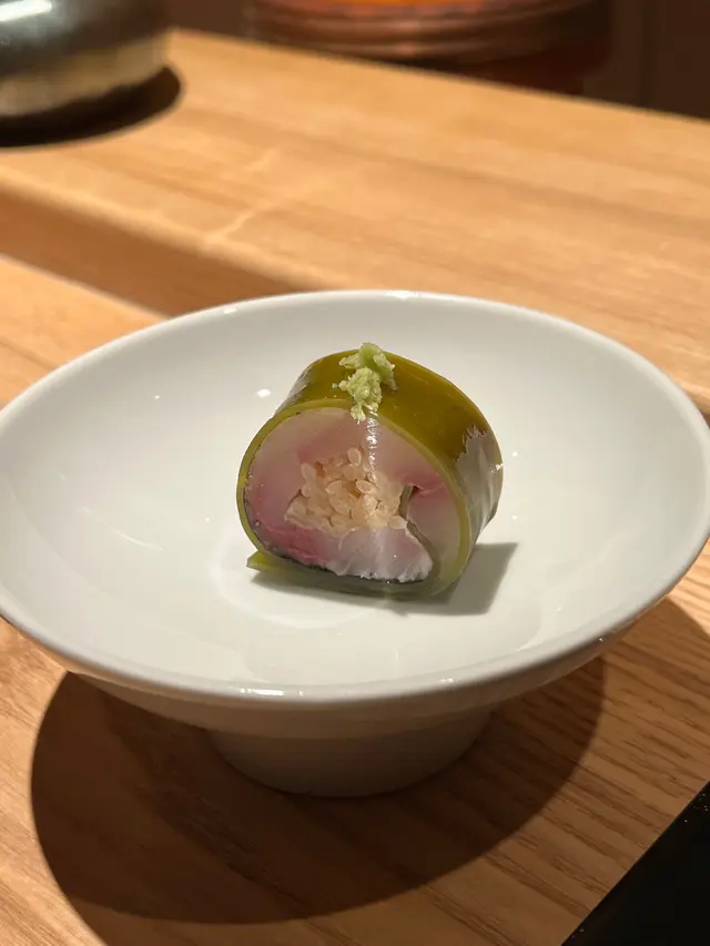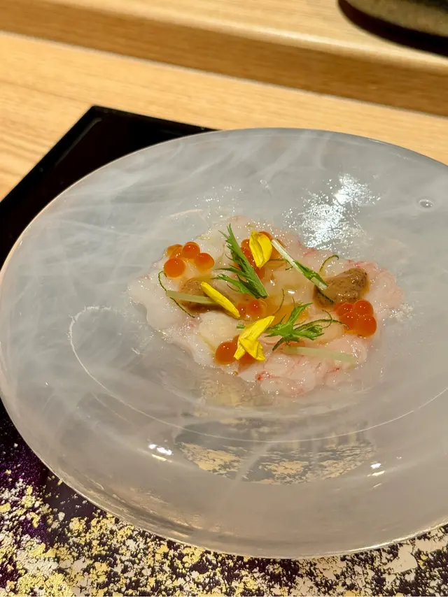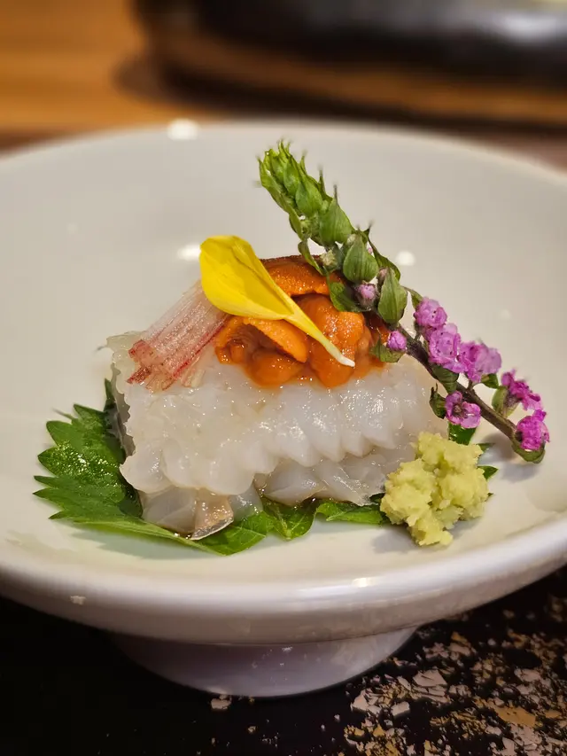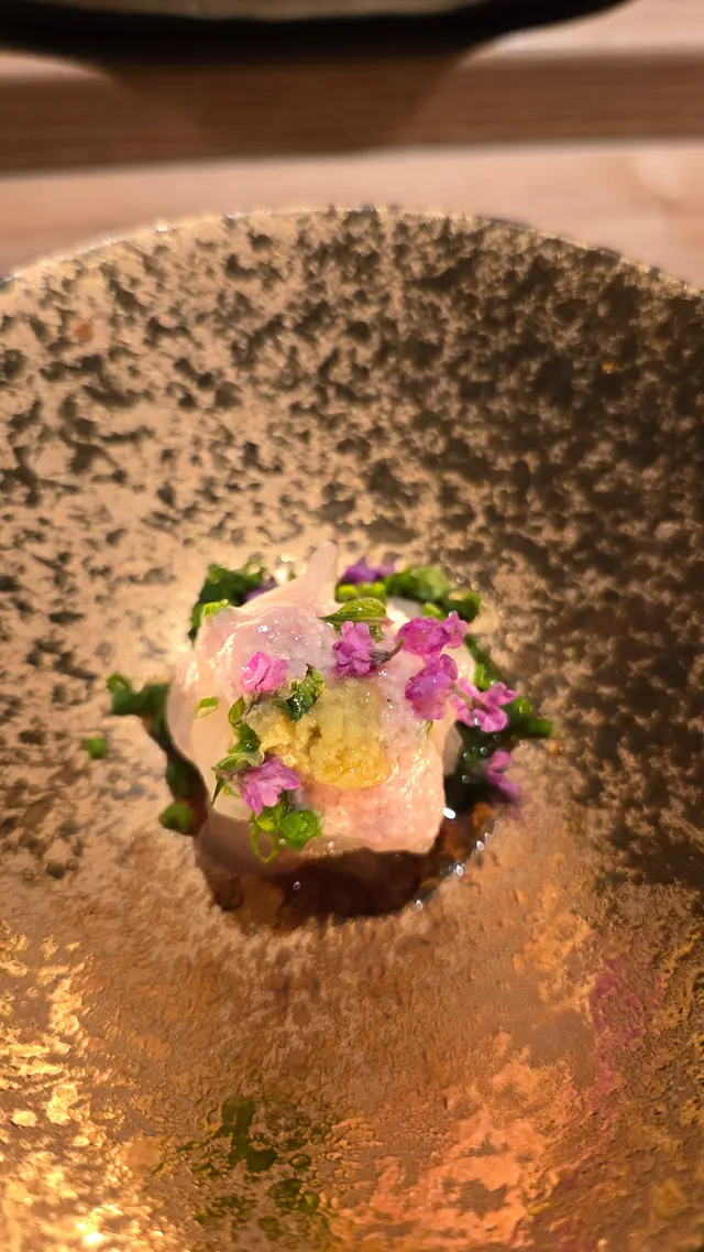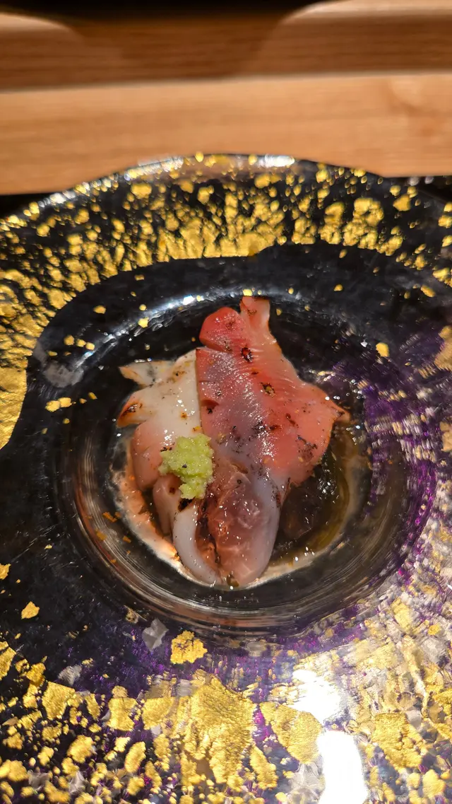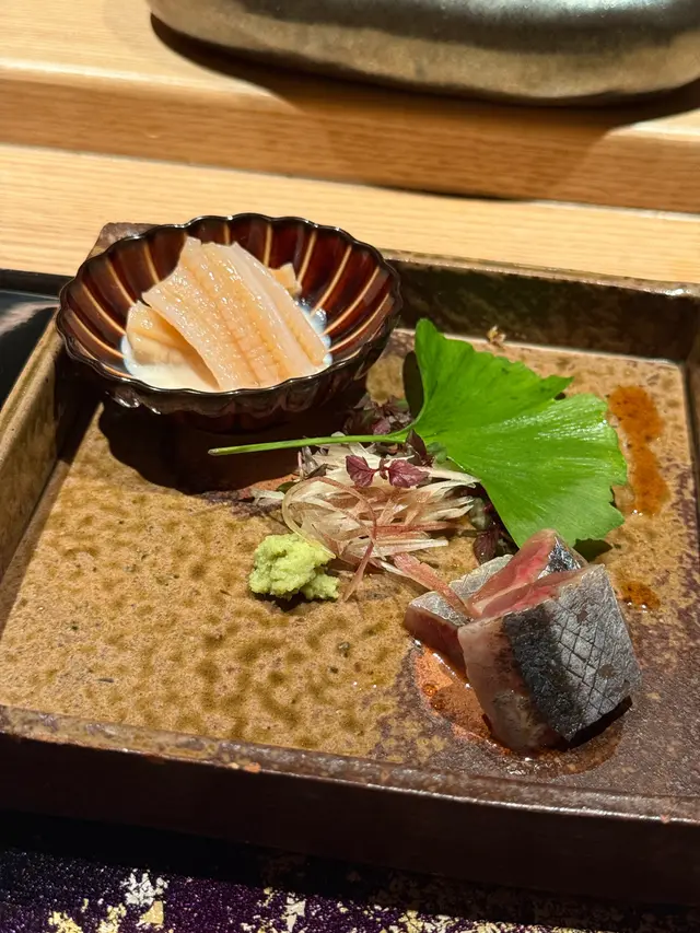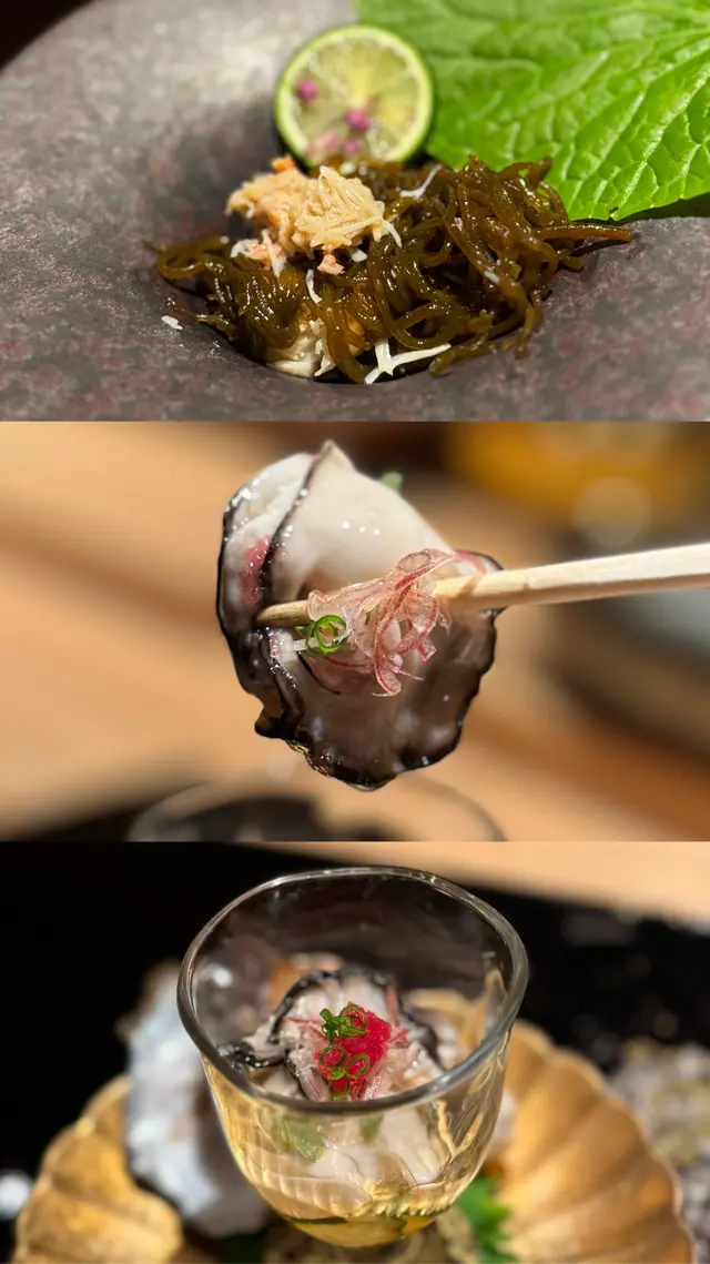 自己生日,揀咗間矜貴嘅Omakase 慶祝一下🤗。呢間日本餐廳喺中環黃金地段,外牆黑色設計超級型,入邊係好靚嘅和式田園風格,一入去已經令人覺得好放鬆愉悅。餐廳座位全壽司吧枱,可以望住師傅一邊處理食材,一邊傾偈,一邊食。🔶先付➖即燒鱈魚乾➖兵庫縣金海老,上面有已經調味的筋子,仲有白蘿蔔粒,非常清甜。🔶前菜醬油煮八爪魚,配Wasabi,八爪魚非常軟腍腍。🔶當造刺身➖天然石雕魚,比較挺身,肉質彈牙,可配鹽/Wasabi/酸汁調味。➖有魚之王之稱的兵庫県明石真鯛,用昆布漬做法,食落軟身,有淡淡昆布甘甜味。➖北海道爽滑脆甜的赤貝,當造肥美又厚肉的秋刀魚。🔶揚物➖蟹肉做的炸春卷,上面撒有烏魚子,食落啖啖蟹肉蟹膏,口感豐富。🔶酒肴➖目光魚,係小型深海魚。魚皮烤得香脆,魚肉軟滑多油,在口內化開,魚油味充斥滿過口腔。無花果用赤酒蒸煮過,有淡淡酒香味道,又會食到無花果嘅果香。🔶煮物➖松葉蟹斧飯加魚翅松葉蟹一絲絲,海鮮香味融入飯,加上熬煮好嘅魚翅,呢碗飯好矜貴。🔶壽司五貫➖中拖羅、關池魚、赤身、海膽吞拿魚蓉紫菜卷、鯖魚昆布卷魚肉質鮮嫩肥美,脂厚油香,入口魚油甘香細膩,齒頰留香。🔶吸物➖赤麵豉湯,入邊有魚肉同豆腐粒。🔶甜品➖秋天栗子特別甜,做自家製栗蓉,配有哈密瓜味道清新作結。呢餐生日飯非常滿足,試到好多比較特別嘅食材,係高質高檔嘅日式餐廳。…查看更多