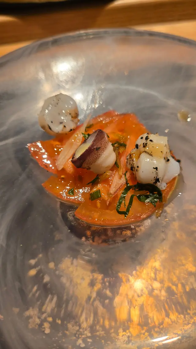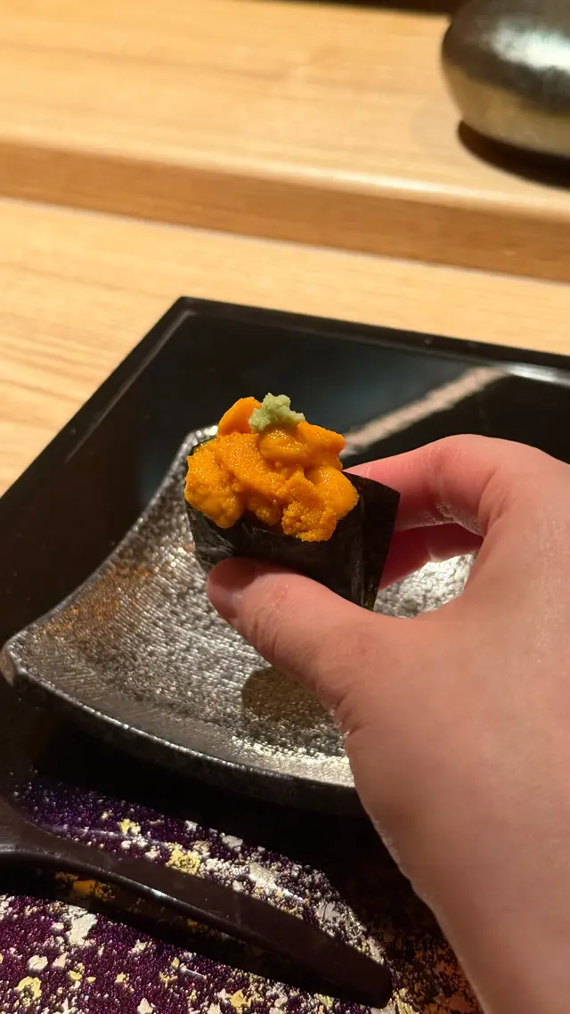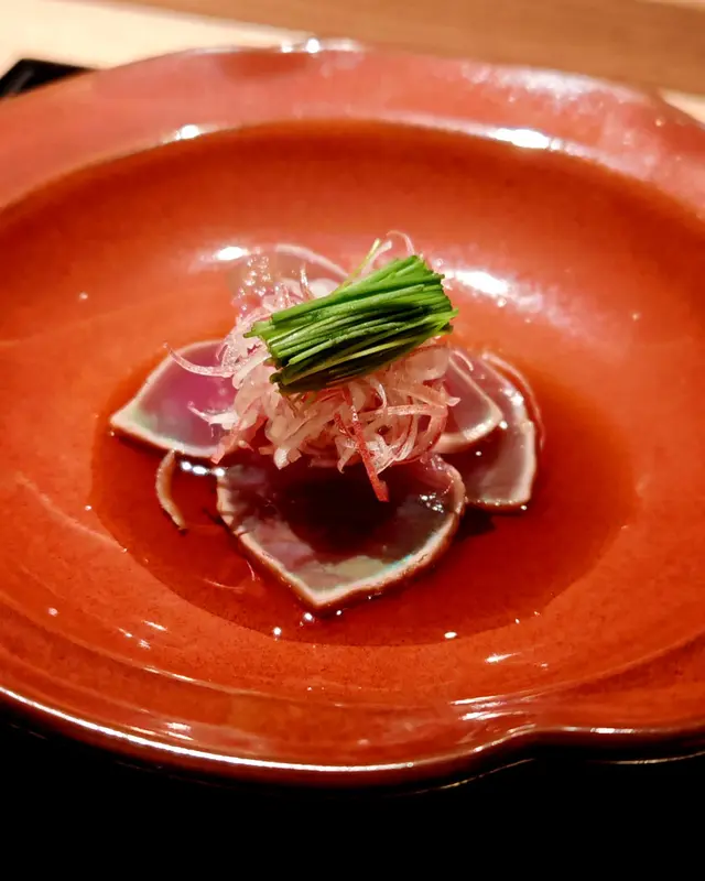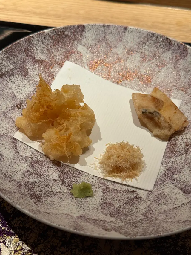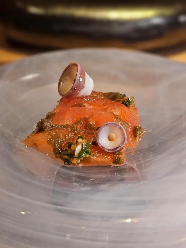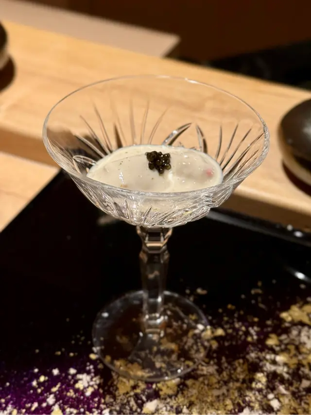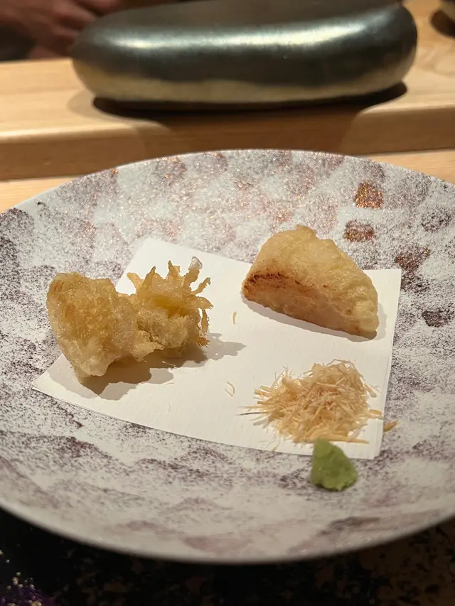自己生日,揀咗間矜貴嘅Omakase 慶祝一下🤗。呢間日本餐廳喺中環黃金地段,外牆黑色設計超級型,入邊係好靚嘅和式田園風格,一入去已經令人覺得好放鬆愉悅。餐廳座位全壽司吧枱,可以望住師傅一邊處理食材,一邊傾偈,一邊食。🔶先付➖即燒鱈魚乾➖兵庫縣金海老,上面有已經調味的筋子,仲有白蘿蔔粒,非常清甜。🔶前菜醬油煮八爪魚,配Wasabi,八爪魚非常軟腍腍。🔶當造刺身➖天然石雕魚,比較挺身,肉質彈牙,可配鹽/Wasabi/酸汁調味。➖有魚之王之稱的兵庫県明石真鯛,用昆布漬做法,食落軟身,有淡淡昆布甘甜味。➖北海道爽滑脆甜的赤貝,當造肥美又厚肉的秋刀魚。🔶揚物➖蟹肉做的炸春卷,上面撒有烏魚子,食落啖啖蟹肉蟹膏,口感豐富。🔶酒肴➖目光魚,係小型深海魚。魚皮烤得香脆,魚肉軟滑多油,在口內化開,魚油味充斥滿過口腔。無花果用赤酒蒸煮過,有淡淡酒香味道,又會食到無花果嘅果香。🔶煮物➖松葉蟹斧飯加魚翅松葉蟹一絲絲,海鮮香味融入飯,加上熬煮好嘅魚翅,呢碗飯好矜貴。🔶壽司五貫➖中拖羅、關池魚、赤身、海膽吞拿魚蓉紫菜卷、鯖魚昆布卷魚肉質鮮嫩肥美,脂厚油香,入口魚油甘香細膩,齒頰留香。🔶吸物➖赤麵豉湯,入邊有魚肉同豆腐粒。🔶甜品➖秋天栗子特別甜,做自家製栗蓉,配有哈密瓜味道清新作結。呢餐生日飯非常滿足,試到好多比較特別嘅食材,係高質高檔嘅日式餐廳。…查看更多