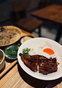 黯然銷魚飯有蔥花、煎蛋、鰻魚又係先俾隻太陽蛋先吸引,鰻魚差唔多有大半條,厚肉,肉質嫩滑,鰻魚汁掛在鰻魚上面。加上蔥花除咗增添色彩還提升了層次感,又一送飯之選。