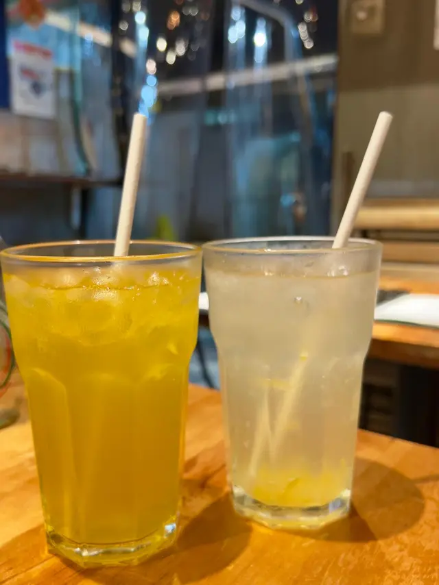 先上兩杯汽水梳打分別係柚子同熱情果味梳打梳打水另上,好襟飲。