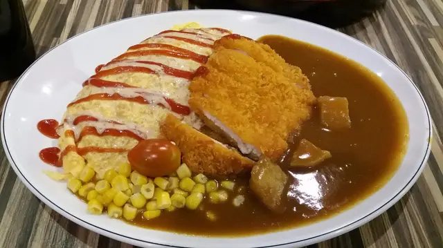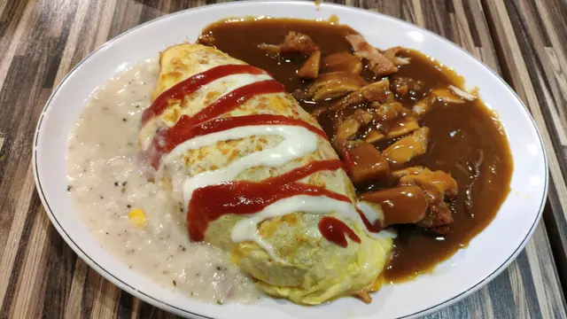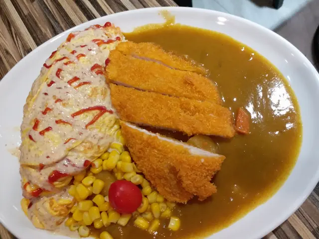 今日去左荃灣行街,去左熊貓酒店入面搵午餐吃。被門外餐牌那張雙色蛋包飯相片吸引就走左入去。我們點了雙色蛋包飯(白汁火腿粟米,咖哩雞扒) $53,日式咖哩吉列豬扒蛋包麵 $59跟相片一樣,大大份,蛋包飯用茄汁飯,雞扒軟熟多汁, 唯一缺點就是白汁不太看到火腿,如果多點火腿基本上就滿分了。第一次見蛋包面,公仔面配上咖哩汁,十分配合,吉列豬扒也十分多汁,不會太乾。見到雖然很少顧客,但十分多外賣,如果最近怕出街,都可以叫外賣品嚐。…查看更多