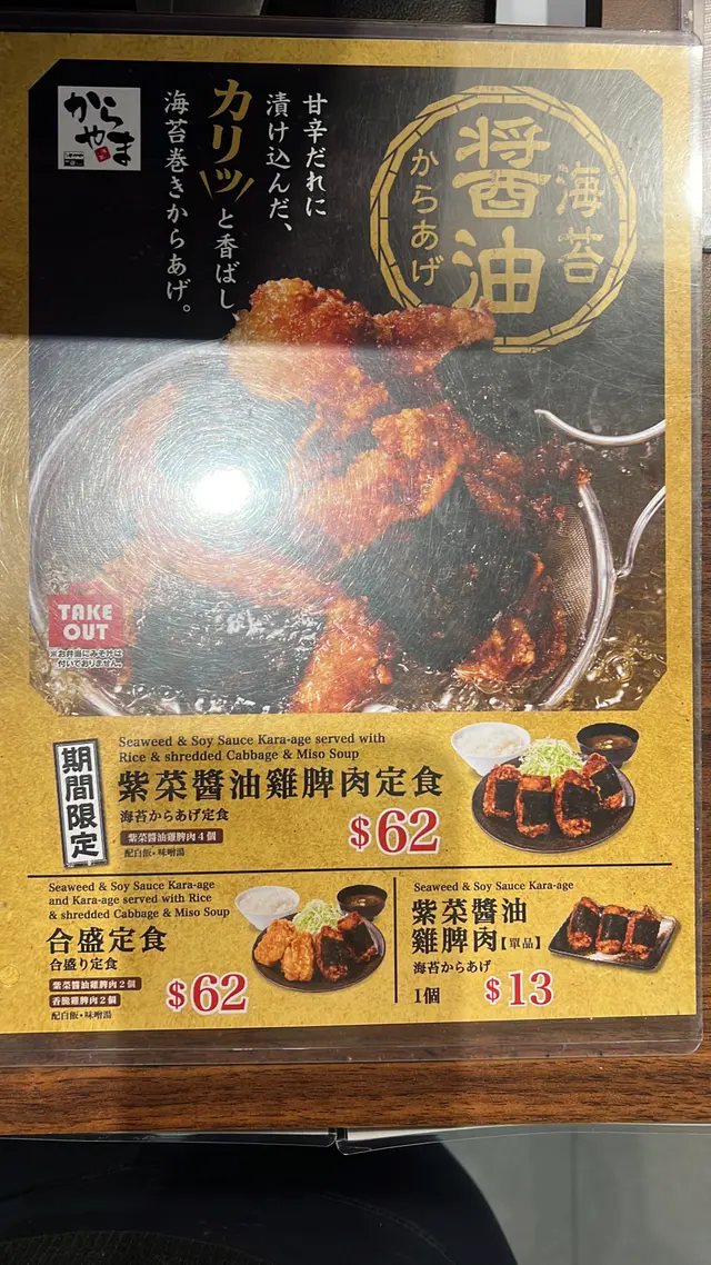 今日在極肚餓的情況下試了一直想試的炸物店 因為這裡有我很喜歡吃的幼椰菜絲 椰菜絲配麻醬真係好夾 我見門口有很多食物模型都好吸引 價錢方面又超合理 所以都想試一試 餐廳是開放式的格局 沒有安裝大門 里面有多少食客一目了然 今日我在下午茶時段來到 餐廳都不是太多食客 只有一兩枱客 我可隨便找位置 我一個人坐了四人坐 位置都算舒適 我問職員有否下午茶餐 這間餐廳只有一個全日餐單 未有任何用餐經驗下我選擇了期間限定的大阪燒炸雞髀飯餐 包一碗麵豉湯 如果要額外飲品要加$8 我點了特飲 可以點餐都可以一個個買 因為非常肚餓 所以點了一個飯餐 白飯沒有飯素好失望 開始時以為日式飯大部分都有的 有些還有紫菜 麵豉湯料頭充足 味道滿意 椰菜絲份量足夠 再加上麻醬 更加滿意 但最失望嘅係佢哋的大阪燒雞髀肉 開始時見那麼深色 就覺得應該會好重口味 但原來只是炸得太過分嘅色 又硬又厚 雞髀肉超細 沒有味道的 原來冇醃過 那一刻才發覺原來那麼平價係有原因的 我加錢加咗特飲 味道都可以 八蚊一杯算合理 炸雞髀嘅沙律醬太少 如果唔係有椰菜絲真係要俾零分 希望店家改善 這個配料真心差 下次試些好評多啲嘅配料 相信會比這個好更多更多 …查看更多