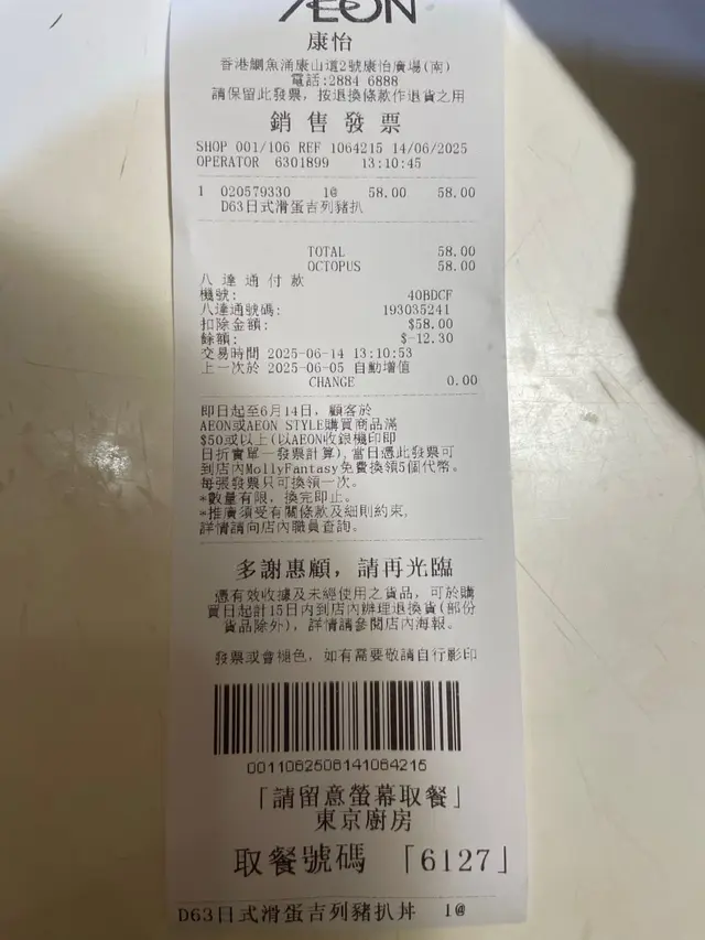 東京Kitchen (太古) 網址: https://s.openrice.com/QrbS0szI3W0 地址: 香港太古康山道1-2號康怡廣場南座AEON Style地舖 電話: +852 28846888