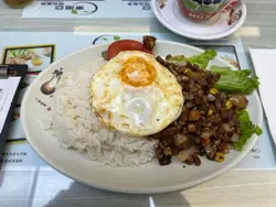 澳門乾炒免治豬肉飯配全熟蛋