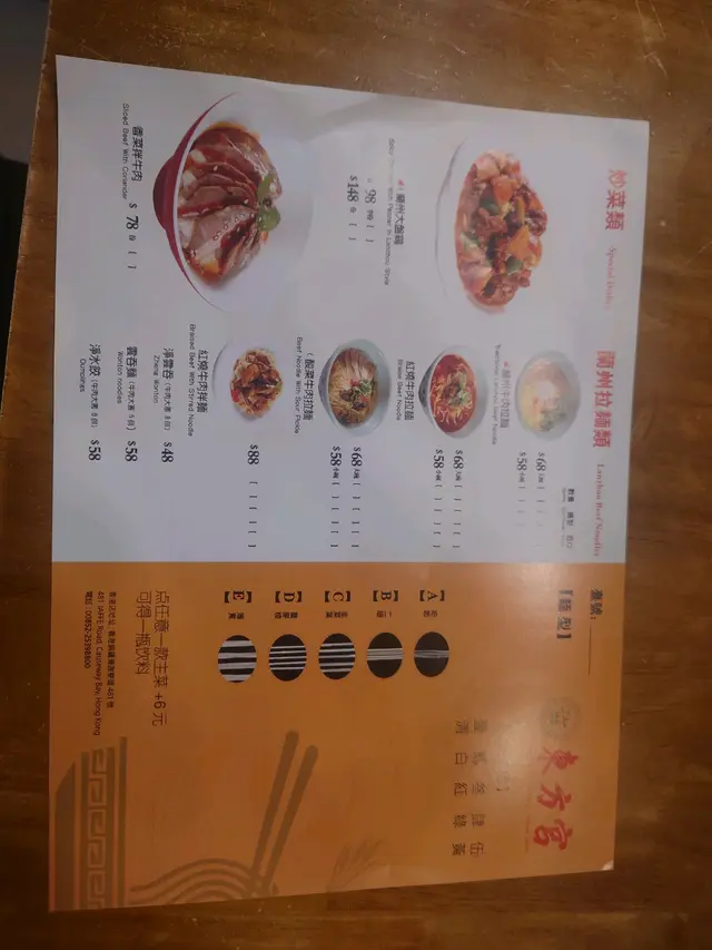 東方宮蘭州牛肉拉麵 (銅鑼灣) 網址: https://s.openrice.com/QrbS0BKK900 地址: 香港銅鑼灣謝斐道477-481號肇明大廈地下C舖 電話: +852 25398800