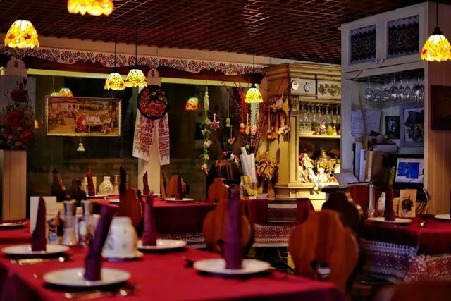 步入餐廳,彷彿穿越時空,昏暗的燈光映襯出東歐色彩的枱椅,牆上掛滿基輔市(烏克蘭首都)的風景畫,讓你沉浸在歐陸的浪漫氛圍中。