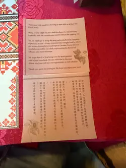 Our family spent an enjoyable noon time in the Ivan the Kozak Restaurant. We reserved seats a day before, and arrived half an hour earlier than the reserved time. The staff there were so nice that they didn't mind our early arrival. We were arranged a comfortable corner with beautiful scenery outside. We ordered traditional Ukrainian Borscht, Chicken, Mushrooms & Onions in Mushroom Sauce, Ukrainian Fan-Fried Potato Pancakes w/ Sour Cream, w/ Mashed Potatoes & Tomato Sour Cream Sauce, and Pork Ribs Marinated in Vodka, Soya Sauce & Honey. All of them were delectable. My 5 year-old son couldn't stop eating. What a wonderful restaurant! I appreciated the staff who were very helpful and friendly. They gave us a very detailed introduction of the main courses. Overall, we had a very pleasant experience in Ivan the Kozak, and will definitely come again for the dinner in the future. Last but not the least, the restaurant is meaningful. We won't forget Ukrainians are fighting hard in their own land and defending their countries. Support! …查看更多
