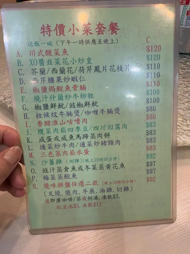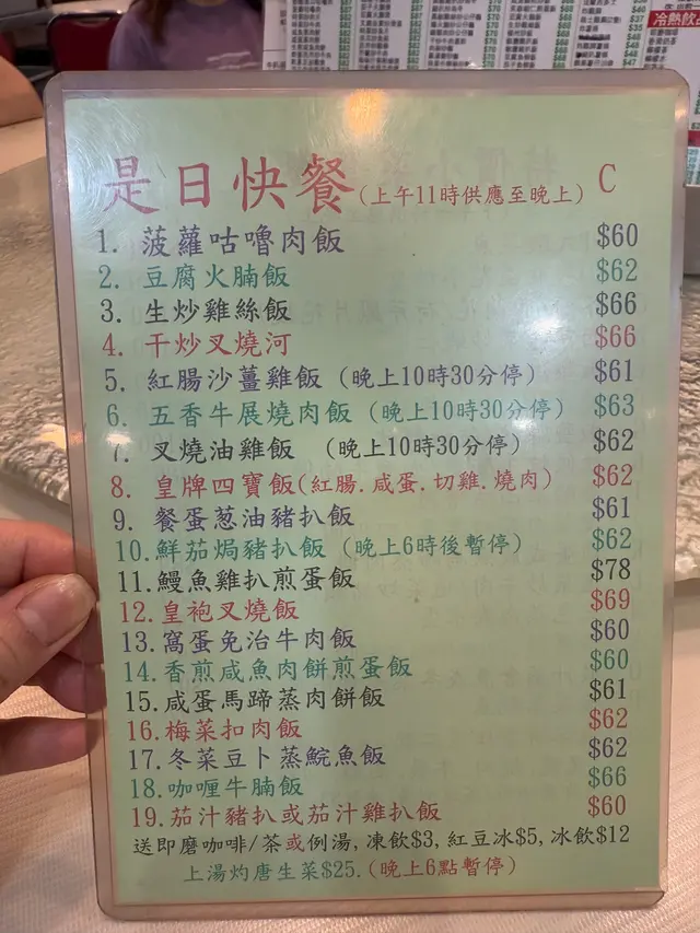 呢間餐廳成日經過都比佢扒餐張相吸引到我眼球👁️👁️,但從未光顧過。直至有一日夜晚8點,友人想食中餐🥢就嚮渣甸街隨意揀咗一間。。。食評全正數?真定假🥶叫左兩個餸,沙嗲肥牛粉絲煲同鹹魚雞粒豆腐煲,另加5蚊轉紅豆冰OMG!紅豆冰嚟到,感覺幾足料,但個味有啲怪,唔係飲開嘅味,紅豆🫘係煮咗好耐紅豆沙果隻紅豆,成個感覺有啲怪,唔太好飲😢OMG !!先嚟沙嗲肥牛粉絲煲,望個樣都覺有啲出事,煲仔嚟到通常都滾緊,但呢個係非常平靜,而且顏色似唔入味,點知一試。。。沙嗲味好淡,似翻熱再放入煲,味道唔太好,似溝稀落鹽嘅芡汁。。。OMG !!!再嚟缺鹹魚嘅豆腐雞粒煲,又係異常平靜😐,豆腐還可以,雞粒完全無味,食咗一半先發現!鹹魚呢?😑一粒細過鼻屎嘅鹹魚粒都揾唔到,係堅冇,嚮底有啲啲汁有極少類似鹹魚嘅味🫨,無錯,只係類似嘅味。餸份量足夠嘅,但味真係唔太好今餐係失望😞但比個機會試吓扒餐,因見到人哋叫扒餐,份量好多,個味都幾香,先比中評,如果下次。。。都唔知幾時😰其實呢,我煮餸已經唔叻,我覺得我整得好食啲😱…查看更多