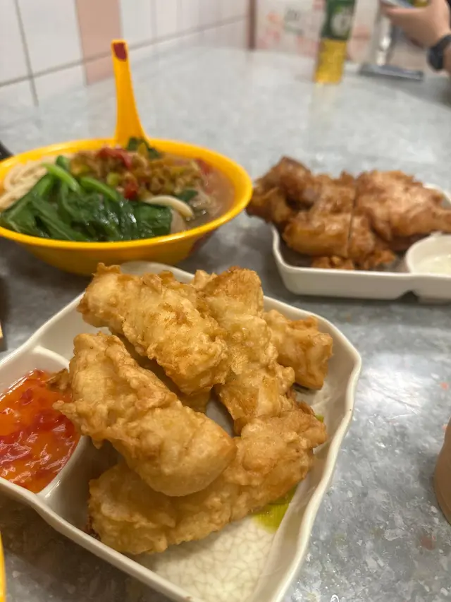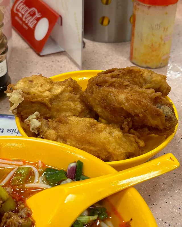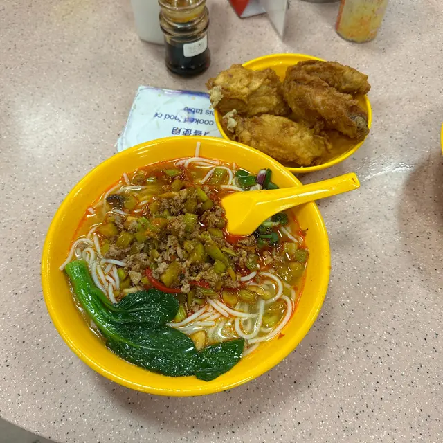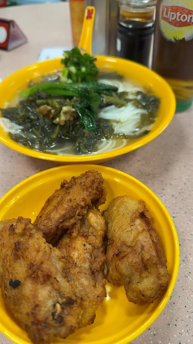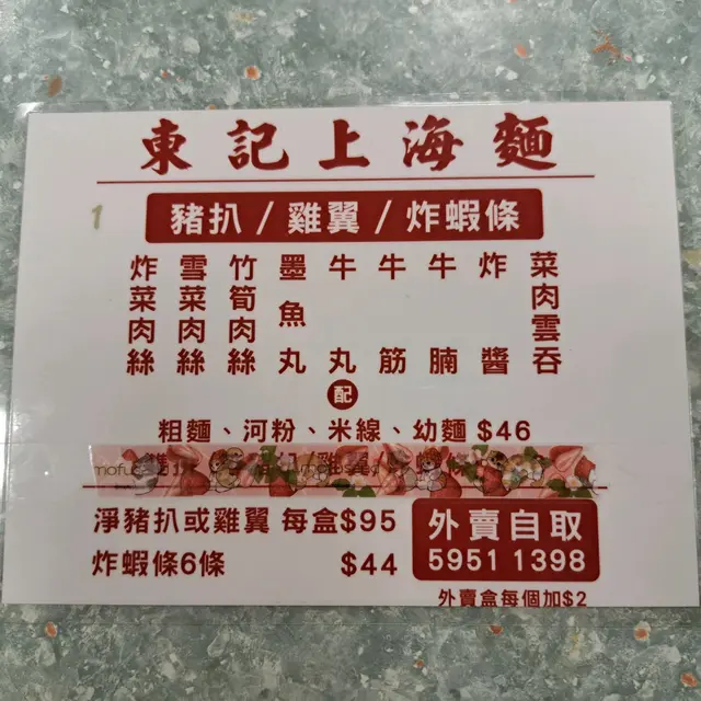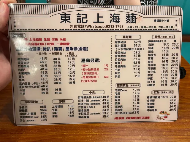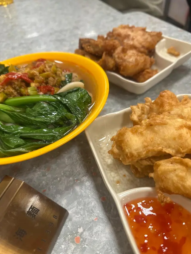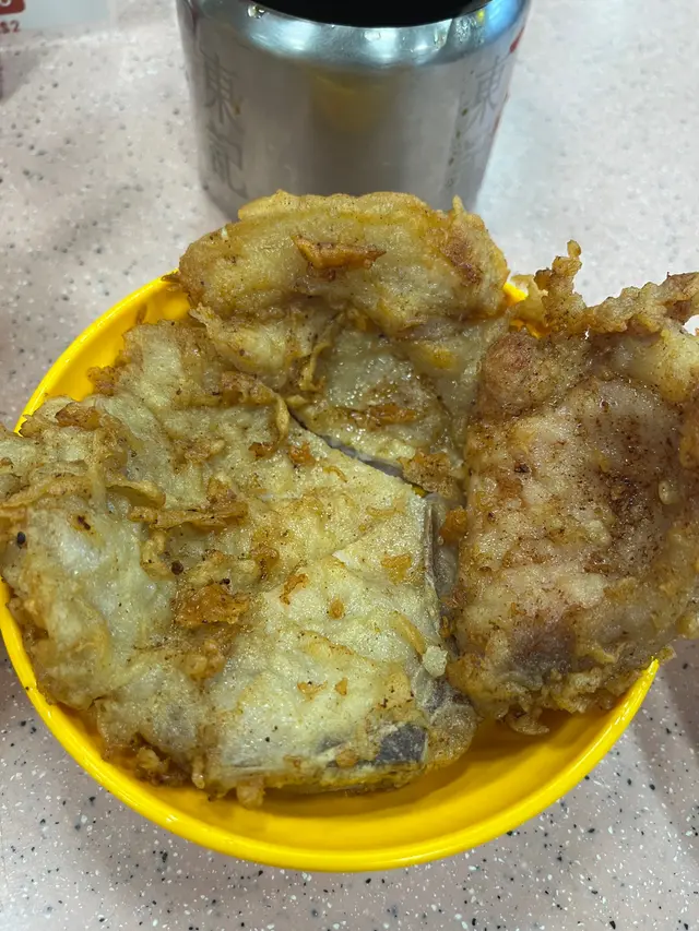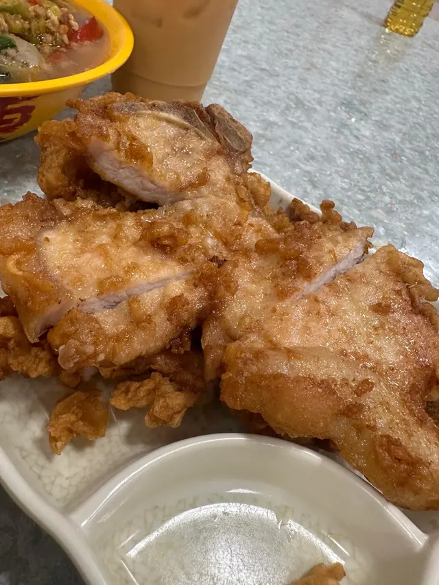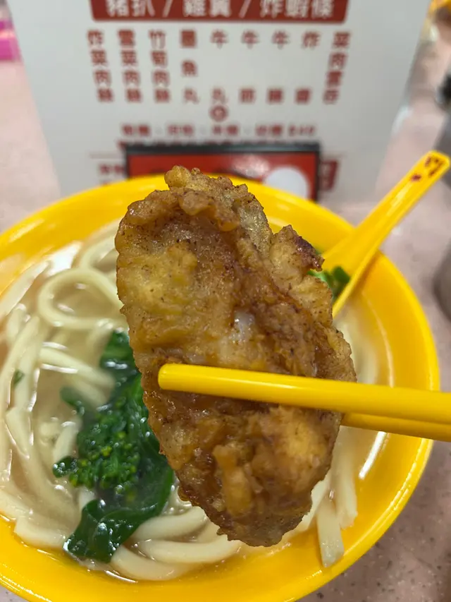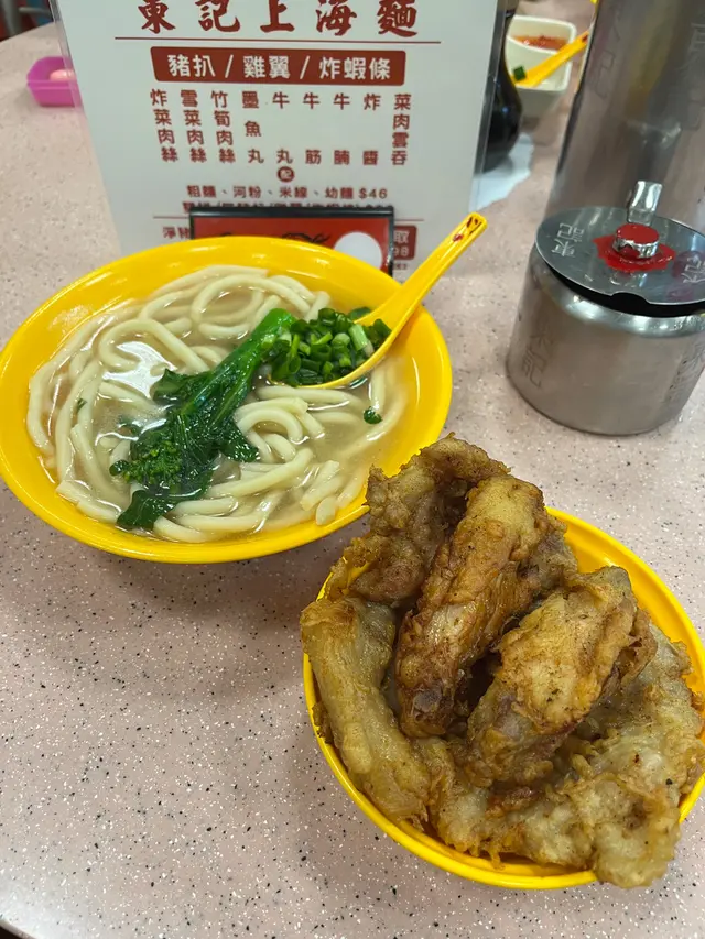 每次去大埔,食東記幾乎已經成為指定動作!佢響大埔街市熟食中心樓上,人氣好高,每次去到都坐滿人。最正就係炸豬扒麵,我通常都會揀粗麵,因為粗面先係傳統嘅上海麵,比較飽肚,入口煙韌掛湯,可惜湯底一般。建議可以加啲佢地自家制辣椒油,帶出香辣味道。豬扒份量十足,大大件仲炸得金黃香脆,咬落仲帶肉汁,夠晒滿足!另外加十蚊嘅炸雞翼都唔輸蝕,外層炸粉薄薄一層,炸完都唔會太亁身,食落好多肉汁。價錢親民,份量又足,真係抵食!…查看更多