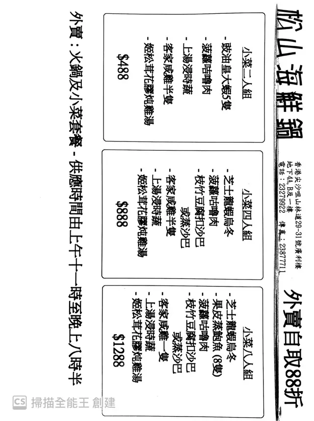 松山海鮮鍋 (尖沙咀) 網址: https://s.openrice.com/QrbS0pKW900 地址: 香港尖沙咀山林道29-31廣利樓1樓及地下4A-4B號舖 電話: +852 23279922