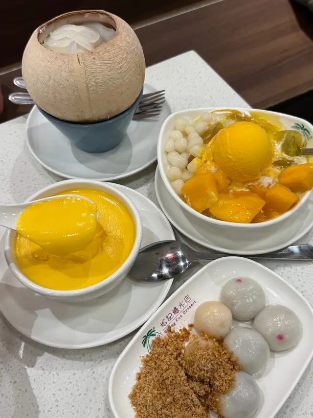 《童年回憶甜品屋🥰》———————————————-#松記糖水店 🍮-🥛 鮮奶燉蛋最近有啲凍啱晒食暖笠笠嘅甜品,先叫咗呢碗鮮奶燉蛋,熱辣辣上枱,蛋香味突出🥰-🖤 擂沙三色湯圓三色湯圓有奶黃、花生同黑芝麻,餡味道濃郁,湯圓口感軟糯,暖笠笠,每一啖都能感受到滿滿嘅幸福😘-🥭 雪芒芒果水晶粉小丸子芒果味道鮮甜,而且大大嚿,水晶粉好滑溜,加埋雪糕口感相當滑順😘-🌴 椰皇海底椰鮮奶燉蛋白小丸子椰皇嘅香氣同燉蛋嘅滑嫩結合得幾好🥥上面佈鋪海底椰口感清新,裏面仲有好多煙煙韌韌嘅小丸子,相當豐富!-⭐價錢參考:鮮奶燉蛋:$30雪芒芒果水晶粉小丸子:$64擂沙三色湯圓:$35椰皇海底椰鮮奶燉蛋白小丸子:$69🍌抵deal 指數:7/10查看更多